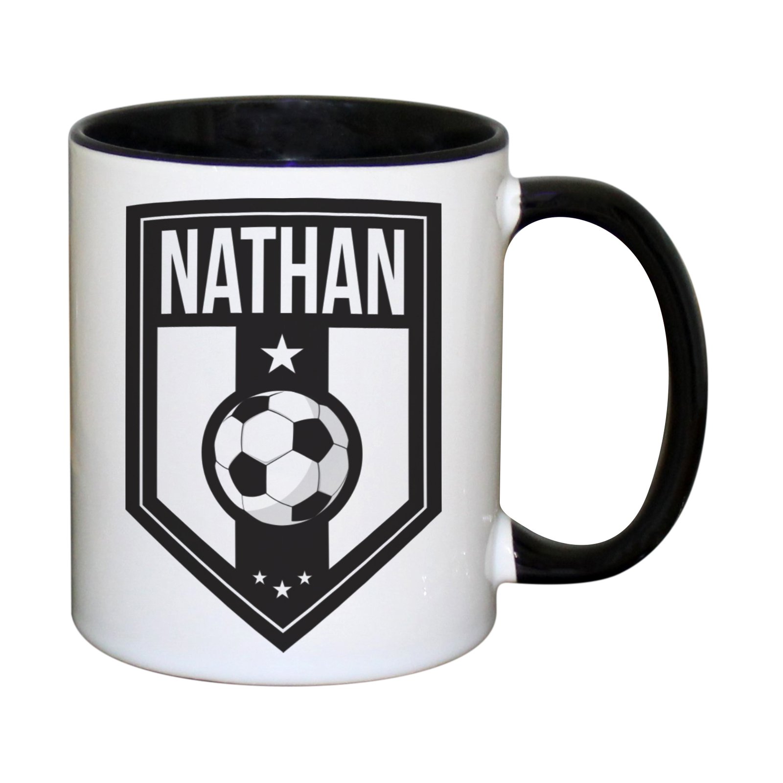 Personalised Football Badge Design Black Handled Ceramic Mug