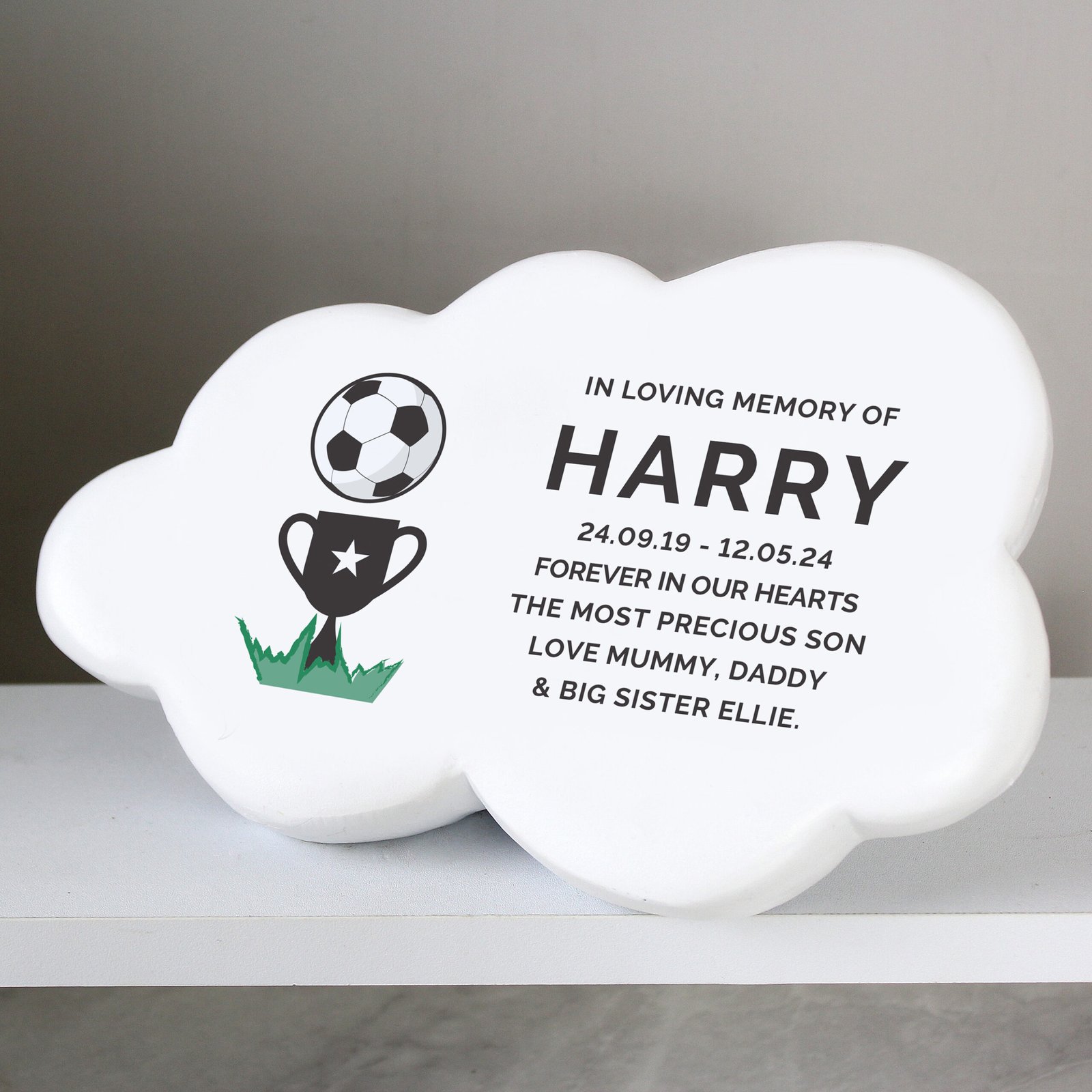 Personalised Football & Trophy Design Memorial Resin Graveside/Garden Cloud Ornament