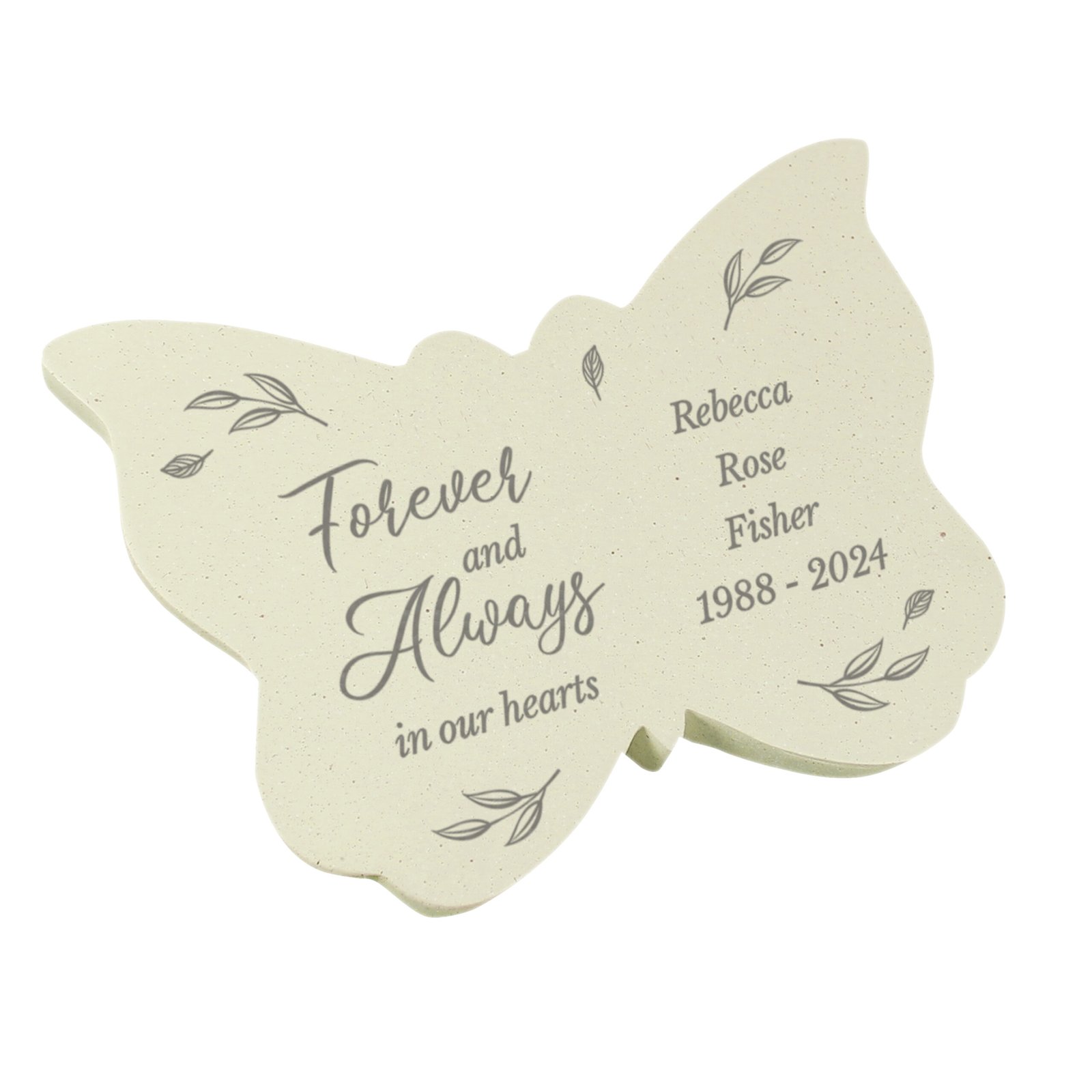 Carefully cast in a natural resin material, this butterfly-shaped ornament features a fixed sentimental phrase and can be personalised with your own special message. Its weather-resistant design makes it suitable for outdoor display, bringing a comforting presence to your chosen memorial space.