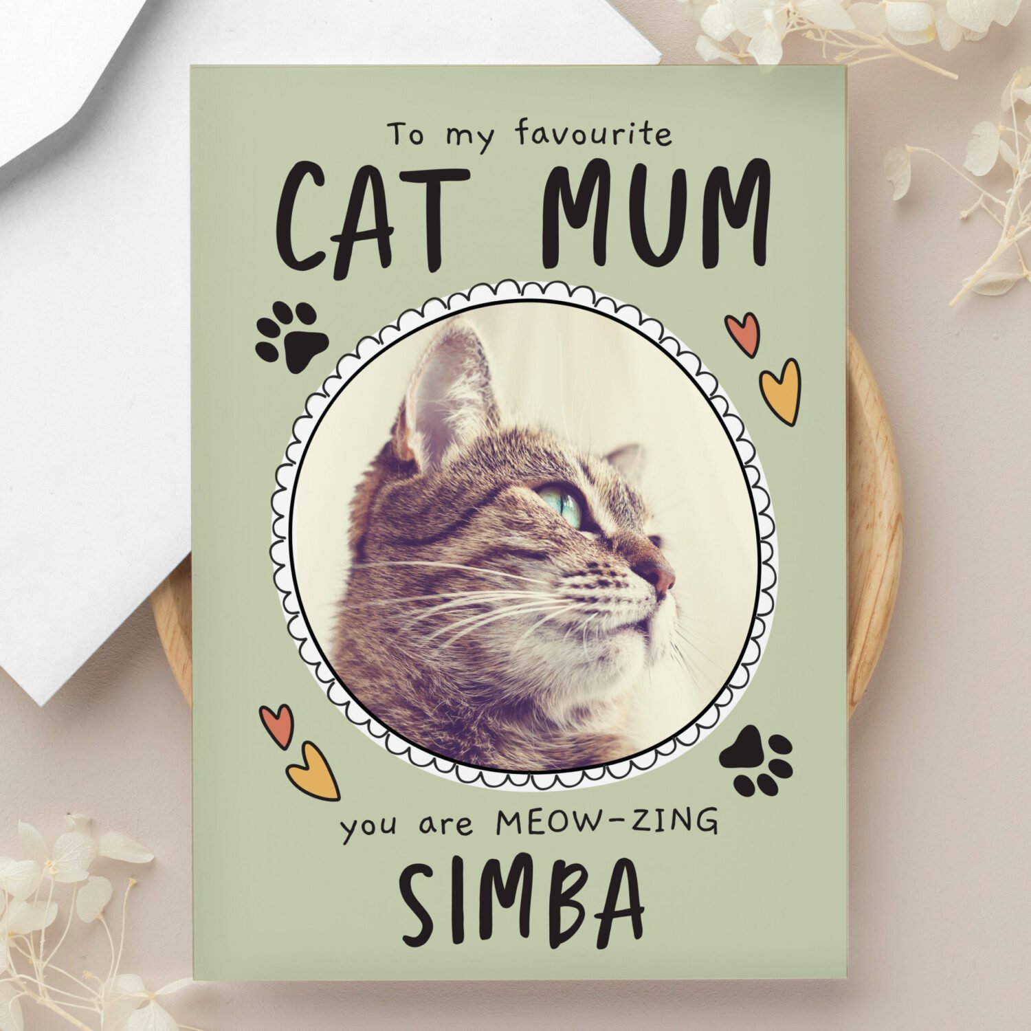 This personalised photo card is a fun and memorable way to share a message, turning your favourite cat photo into a keepsake that’s sure to make someone smile.