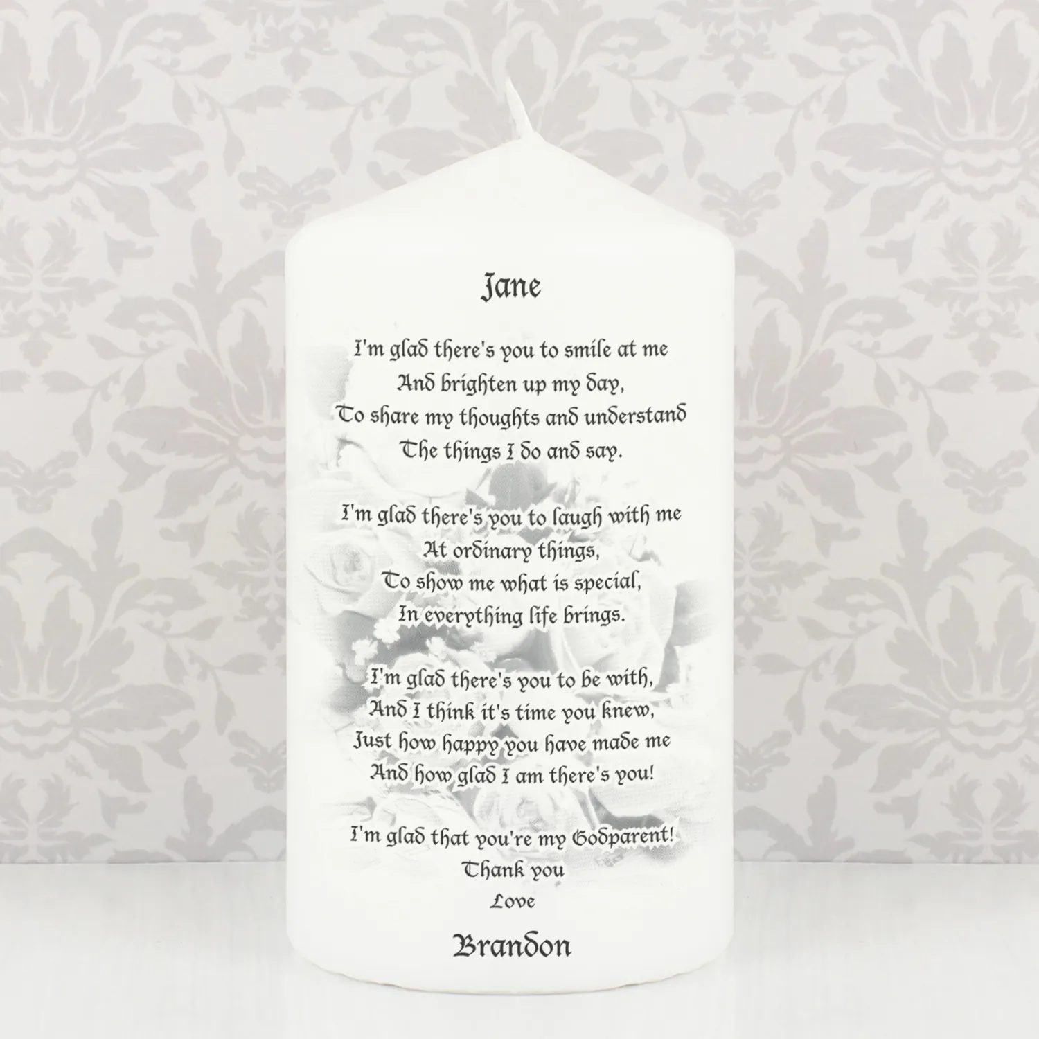 Personalised Godparent Poem Pillar Candle