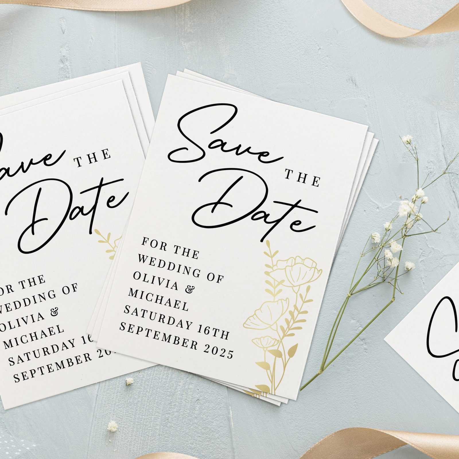 Personalised Gold Floral Design Wedding ‘Save The Date’ Cards (36 Pack)