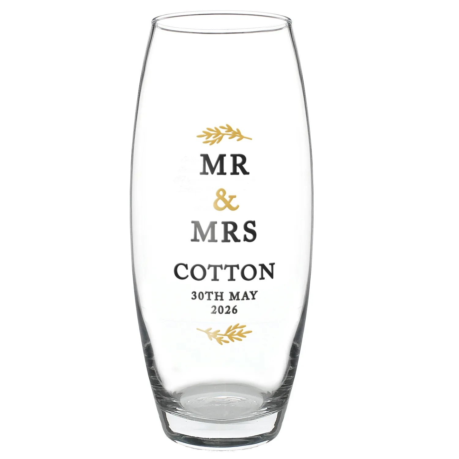 Personalised Gold Leaf Design Couples Tapered Glass Bullet Vase