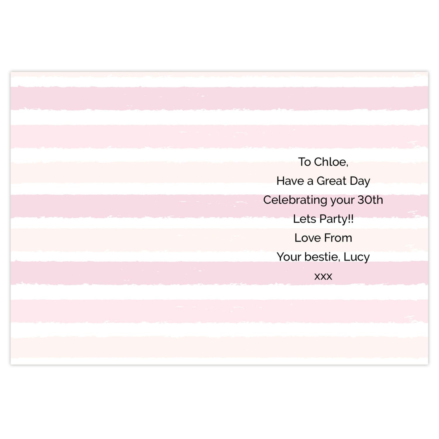 Celebrate a special birthday with this charming Personalised Gold Numbers & Pink Stripe Design Birthday Card. Featuring stylish gold numbers and a pretty pink stripe, it’s the perfect card to brighten anyone’s big day with a personalised touch.