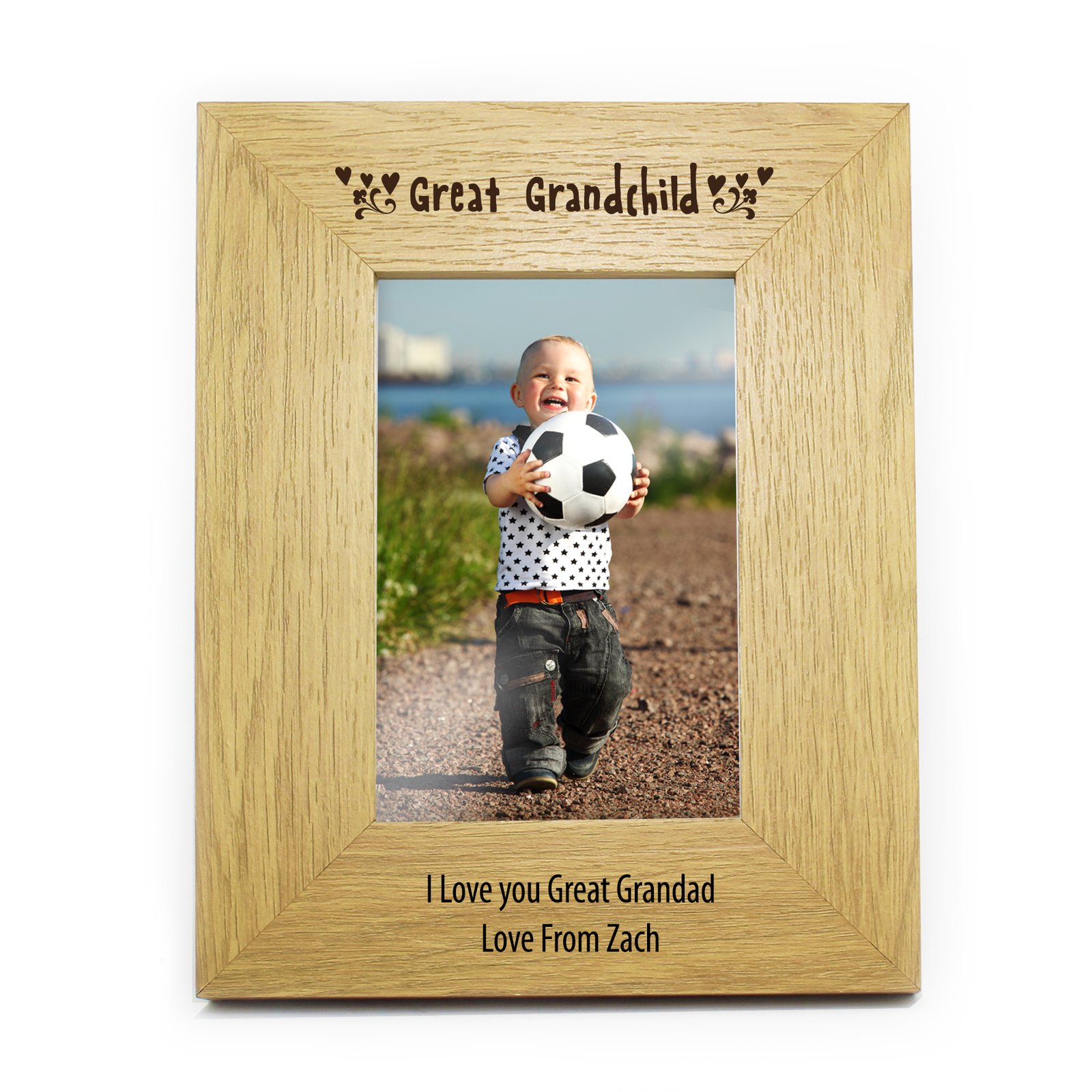 Personalised ‘Great Grandchild’ 4×6 Portrait Oak Finish Photo Frame