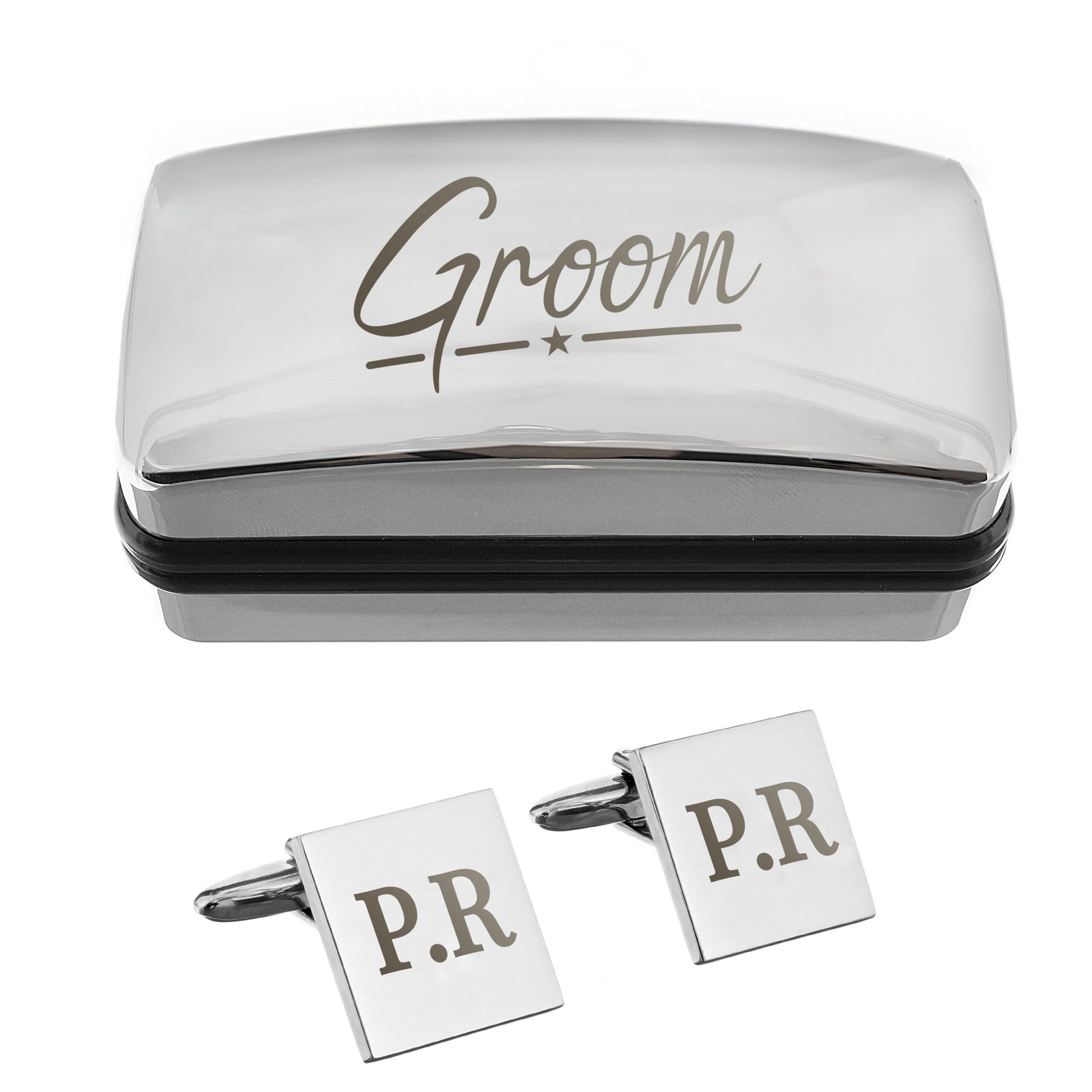 - Features the fixed text: “Groom” engraved on the lid
