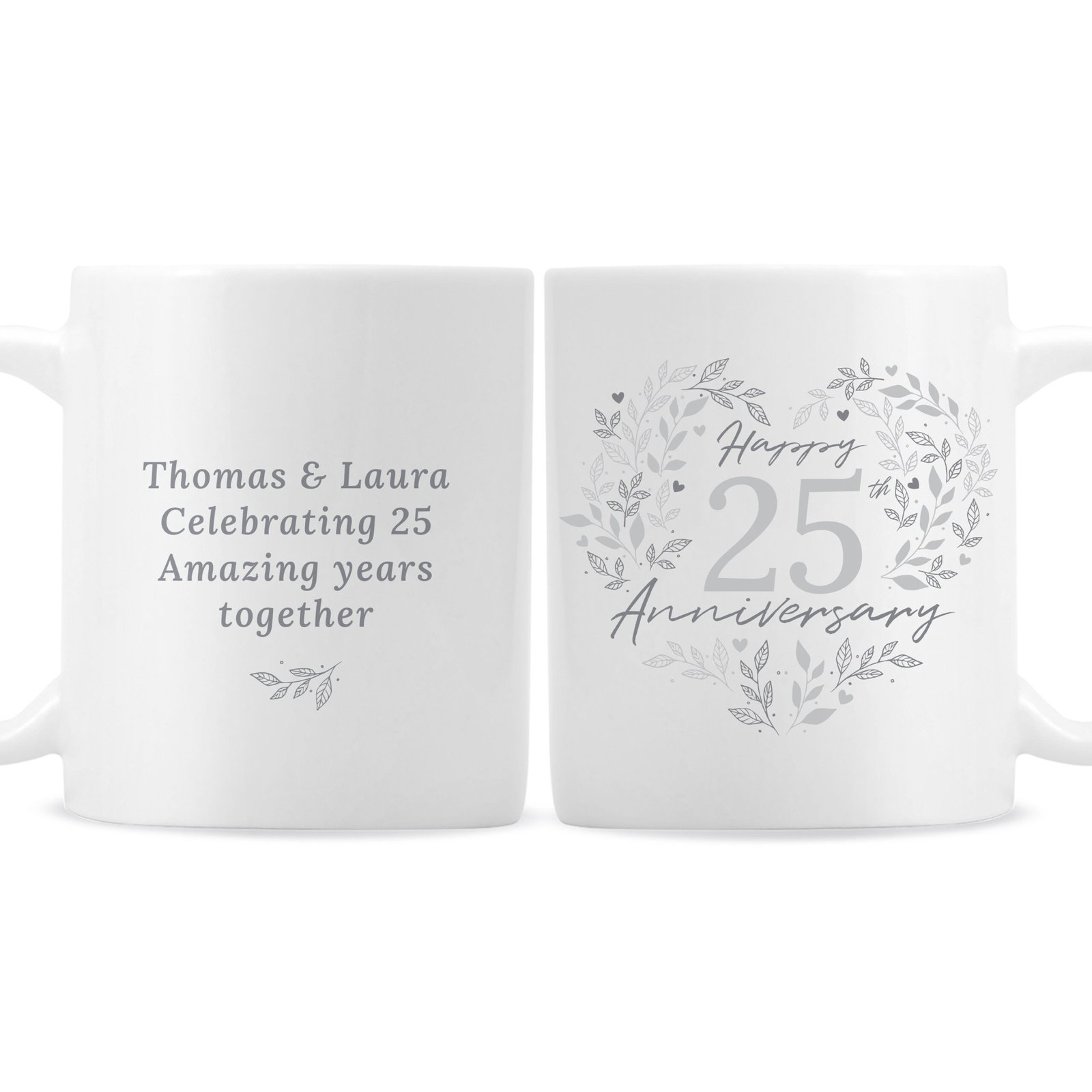 What better way to celebrate a Silver Anniversary than with this elegant personalised mug? Commemorating 25 wonderful years together, this beautifully crafted ceramic mug makes a timeless keepsake that symbolises enduring love and devotion.