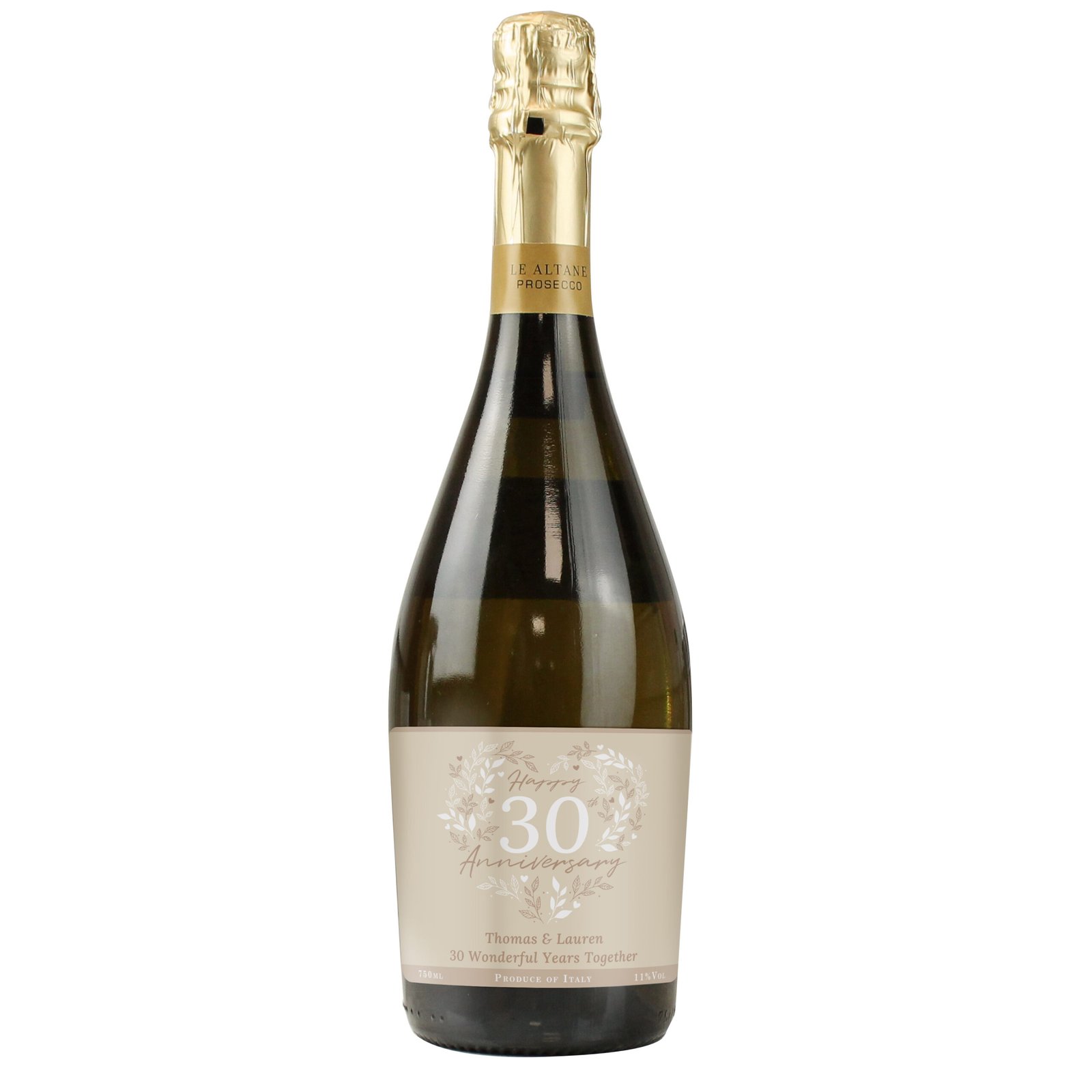 Personalised ‘Happy 30th Anniversary’ Pearl Heart Design Bottle of Prosecco