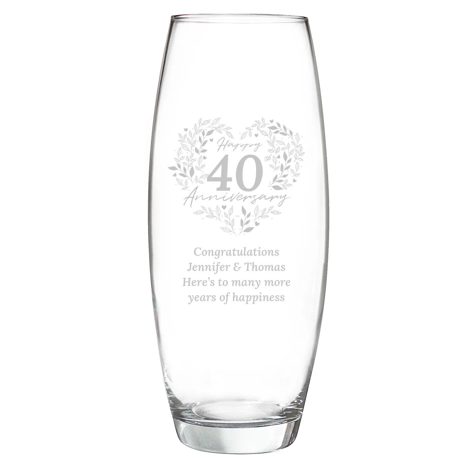 Personalised ‘Happy Anniversary’ Wreath Design Tapered Glass Bullet Vase