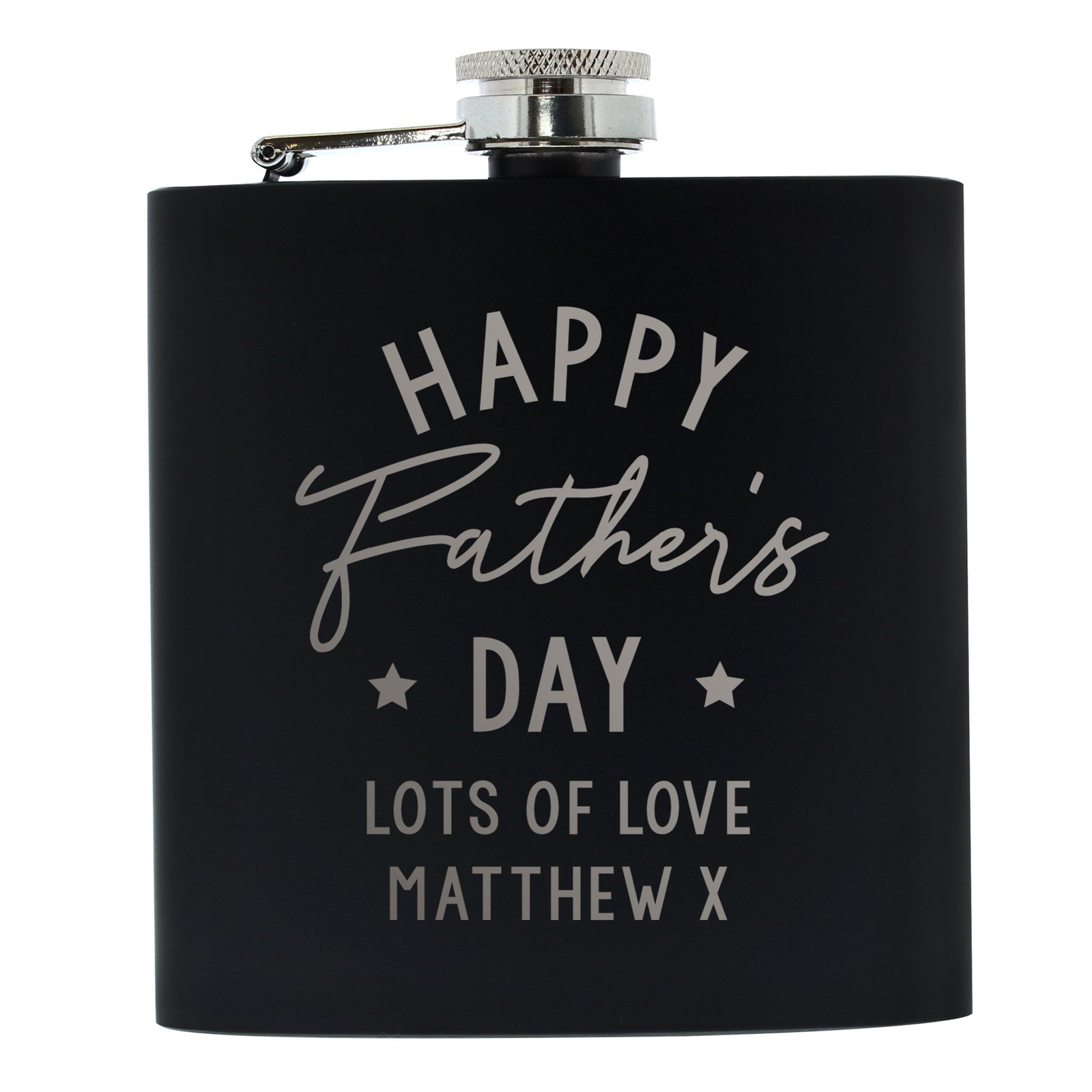 Personalised ‘Happy Father’s Day’ Stars Motif Black Stainless Steel Hip Flask