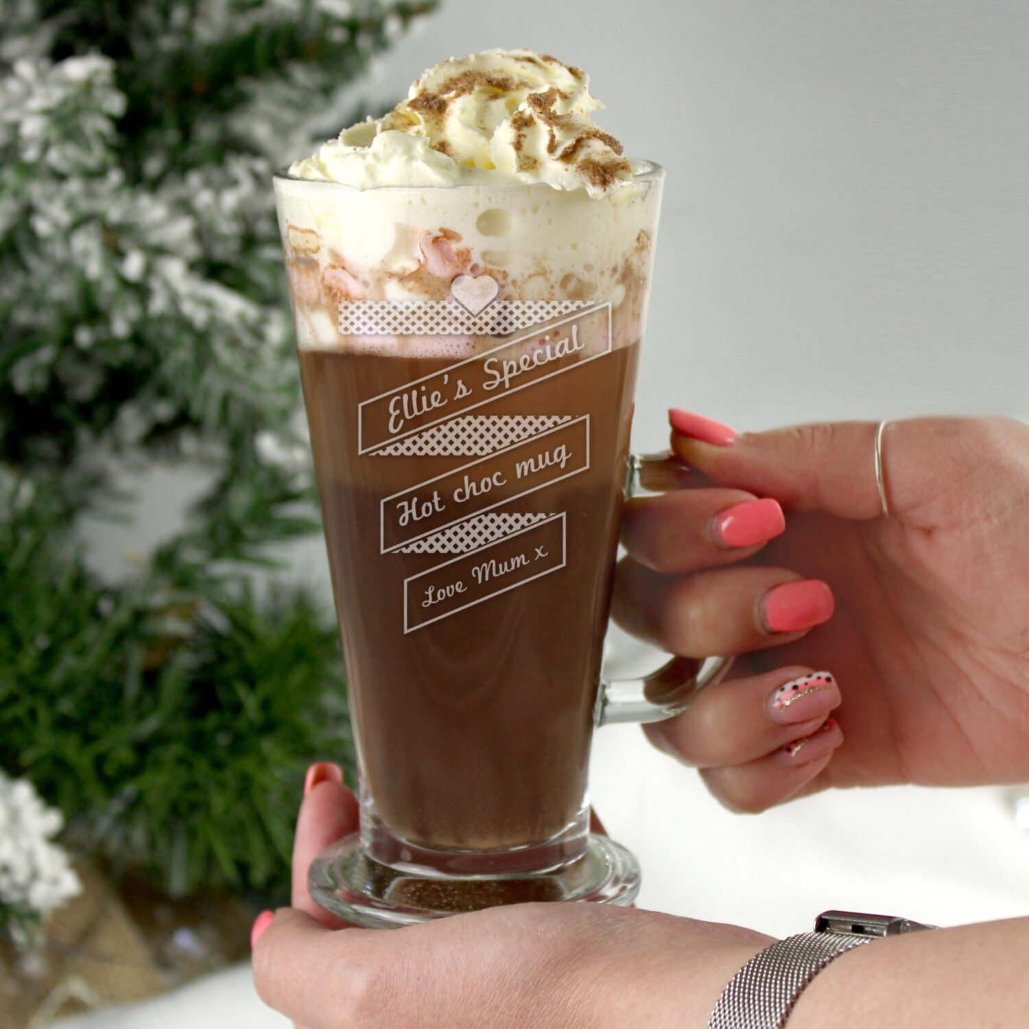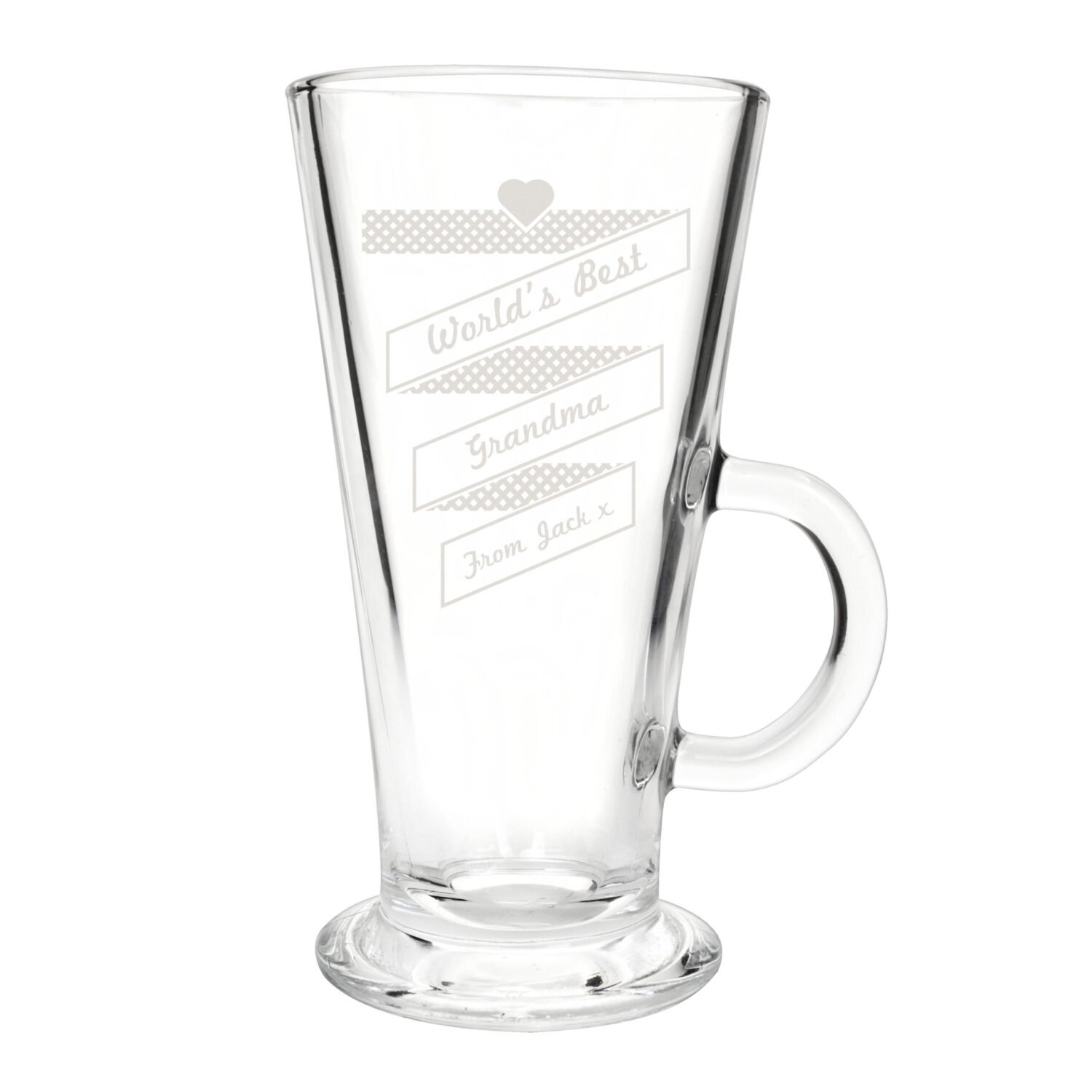 Add a touch of elegance to every coffee break with this charming Personalised Heart Motif Banner Design Latte Glass. A thoughtful and stylish gift for coffee lovers, this glass is perfect for enjoying lattes, cappuccinos, or any favourite hot beverage in personalised style.