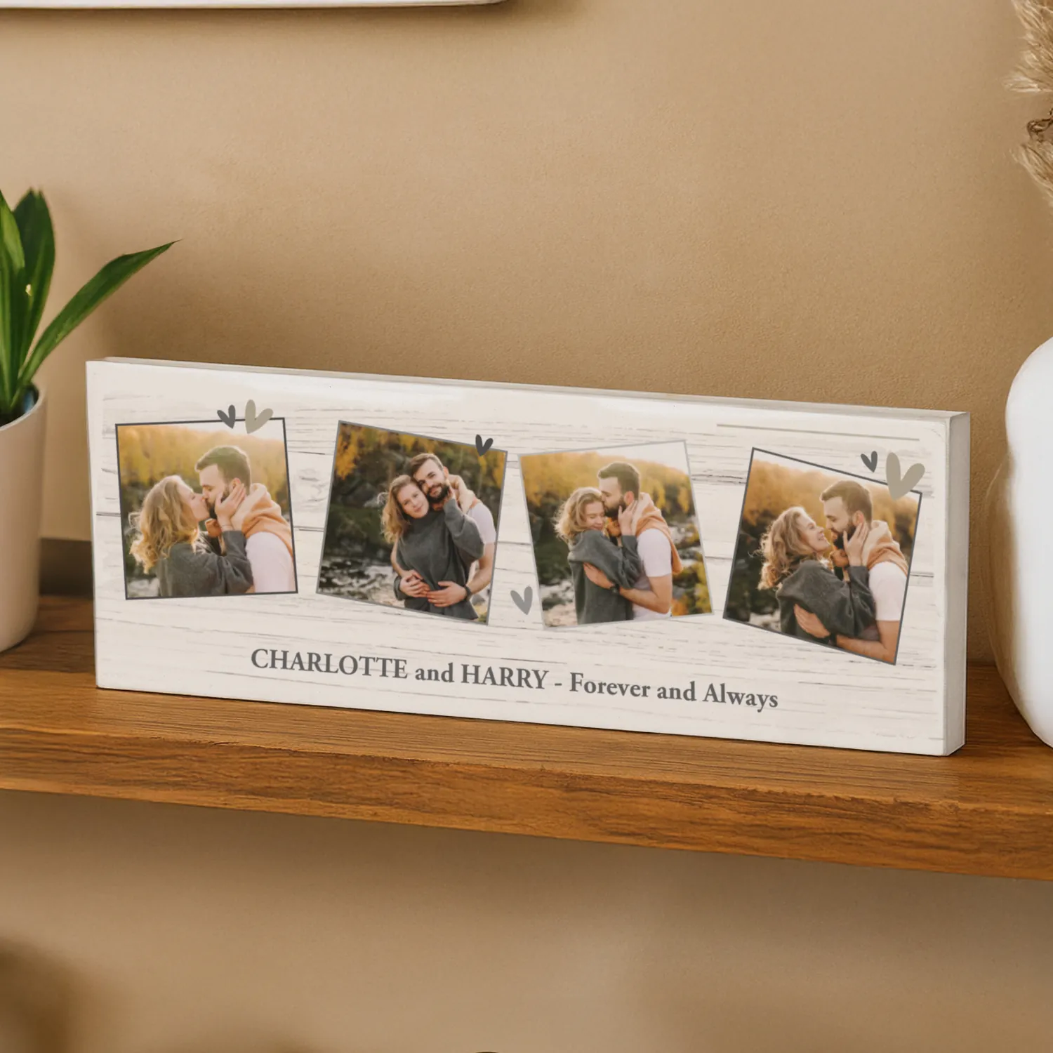 Personalised Hearts Motif Multi Photo Upload White Wooden Mantel Decoration