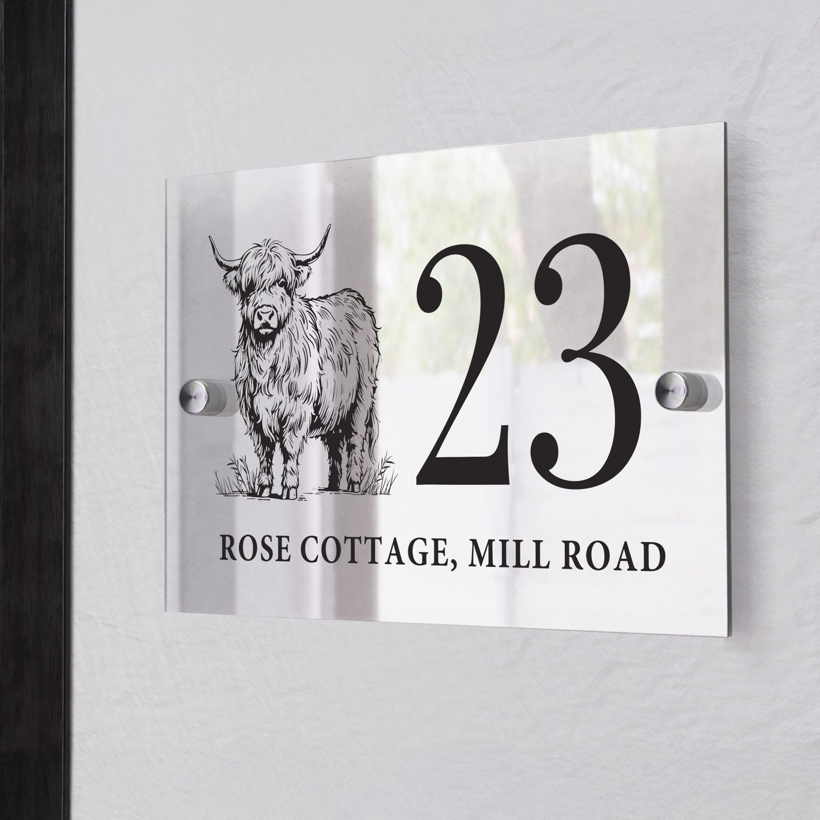 Personalised Highland Cow Design Acrylic House Sign