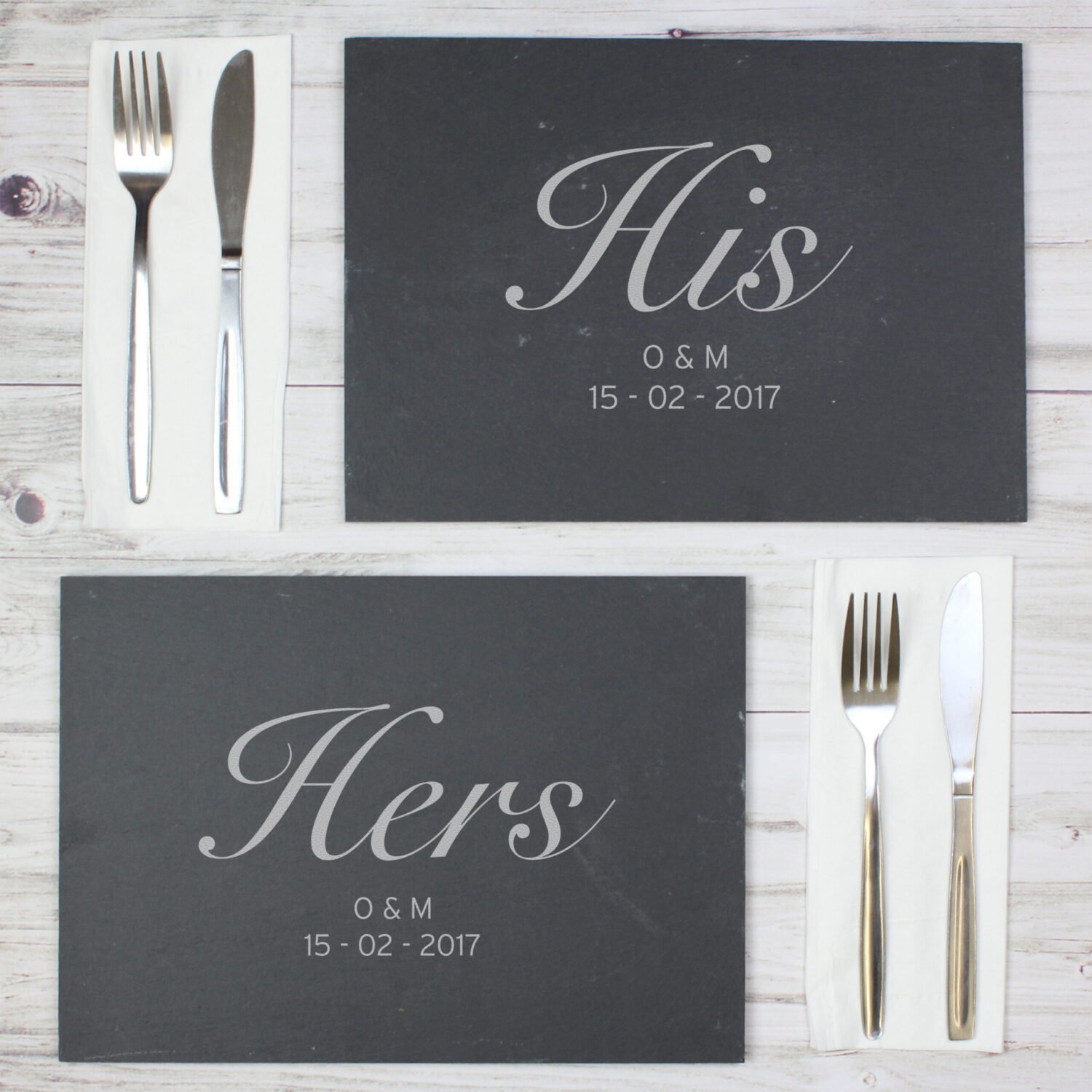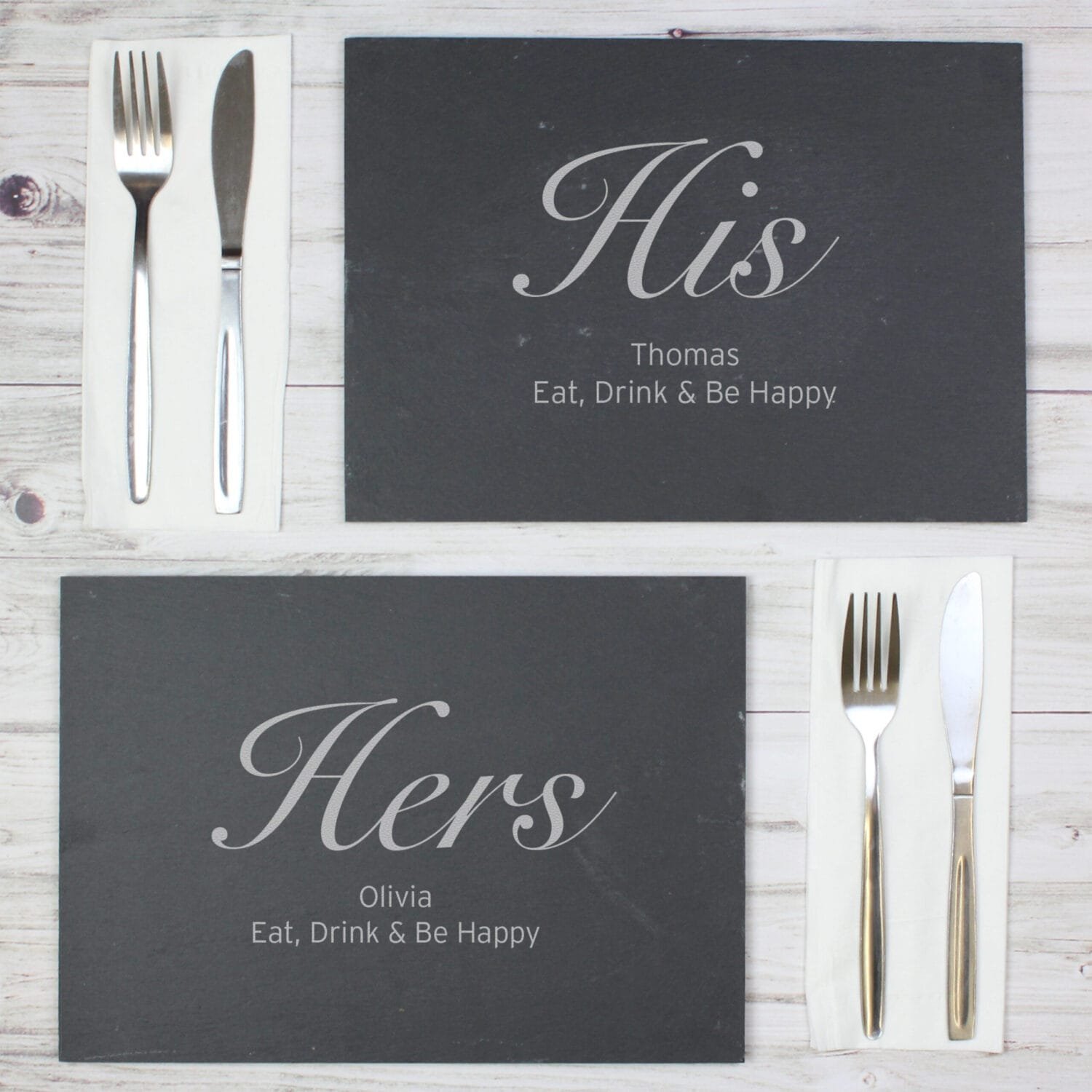 Personalised His & Hers Slate Placemat Set