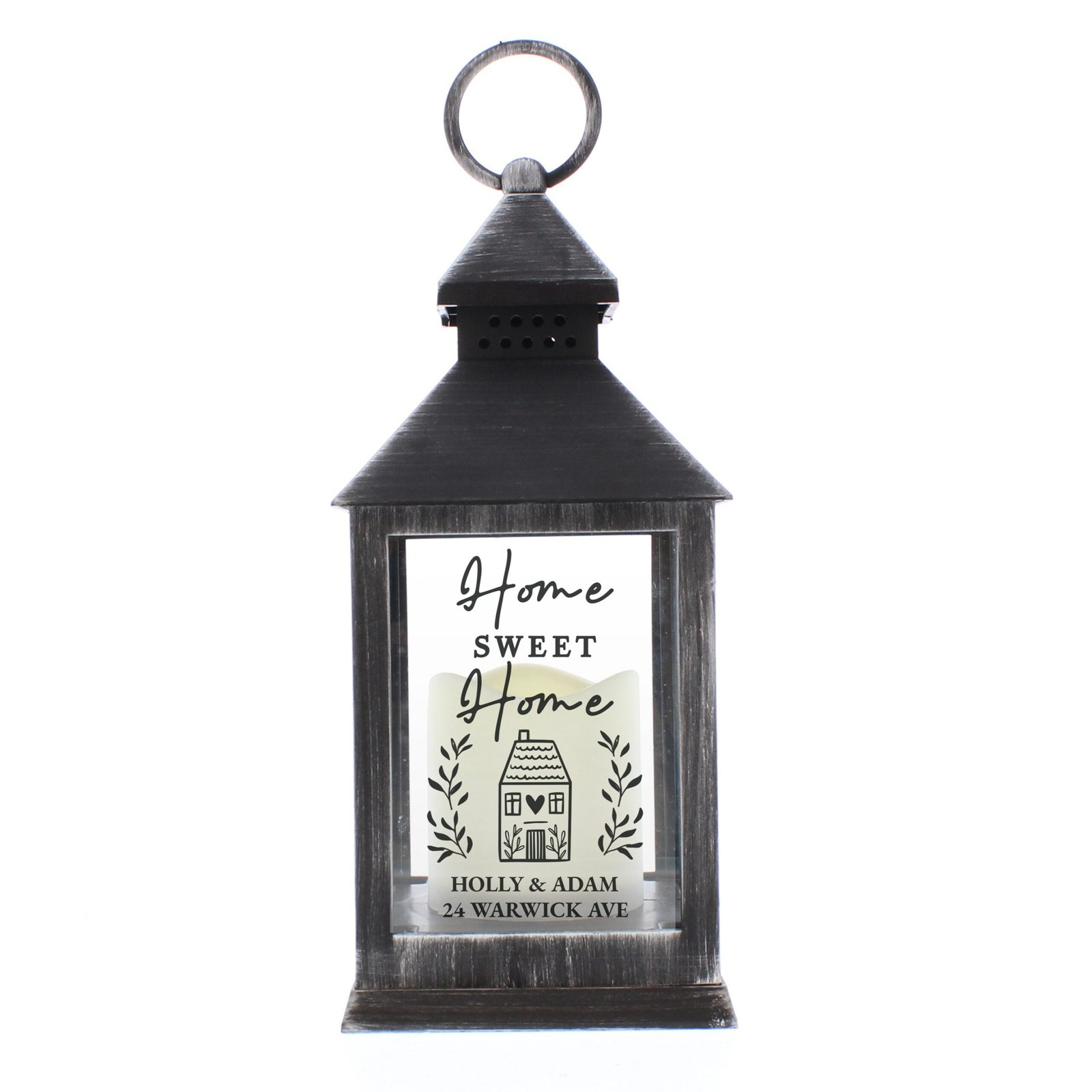 Personalised ‘Home Sweet Home’ Rustic Black Plastic Light-up Lantern