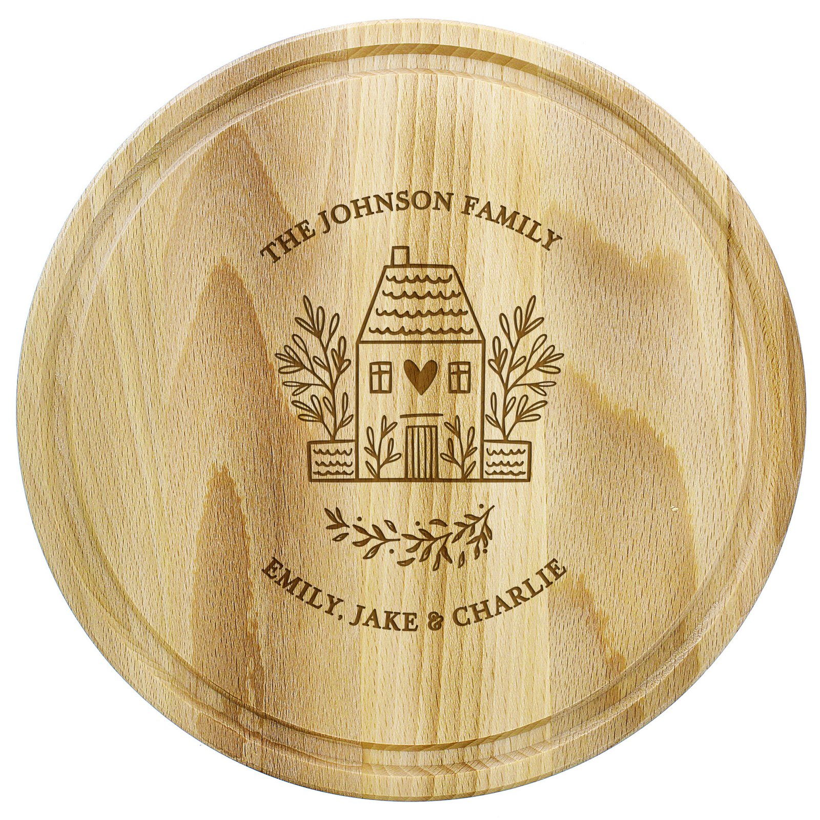 Personalised House & Leaf Design Round Wooden Chopping Board