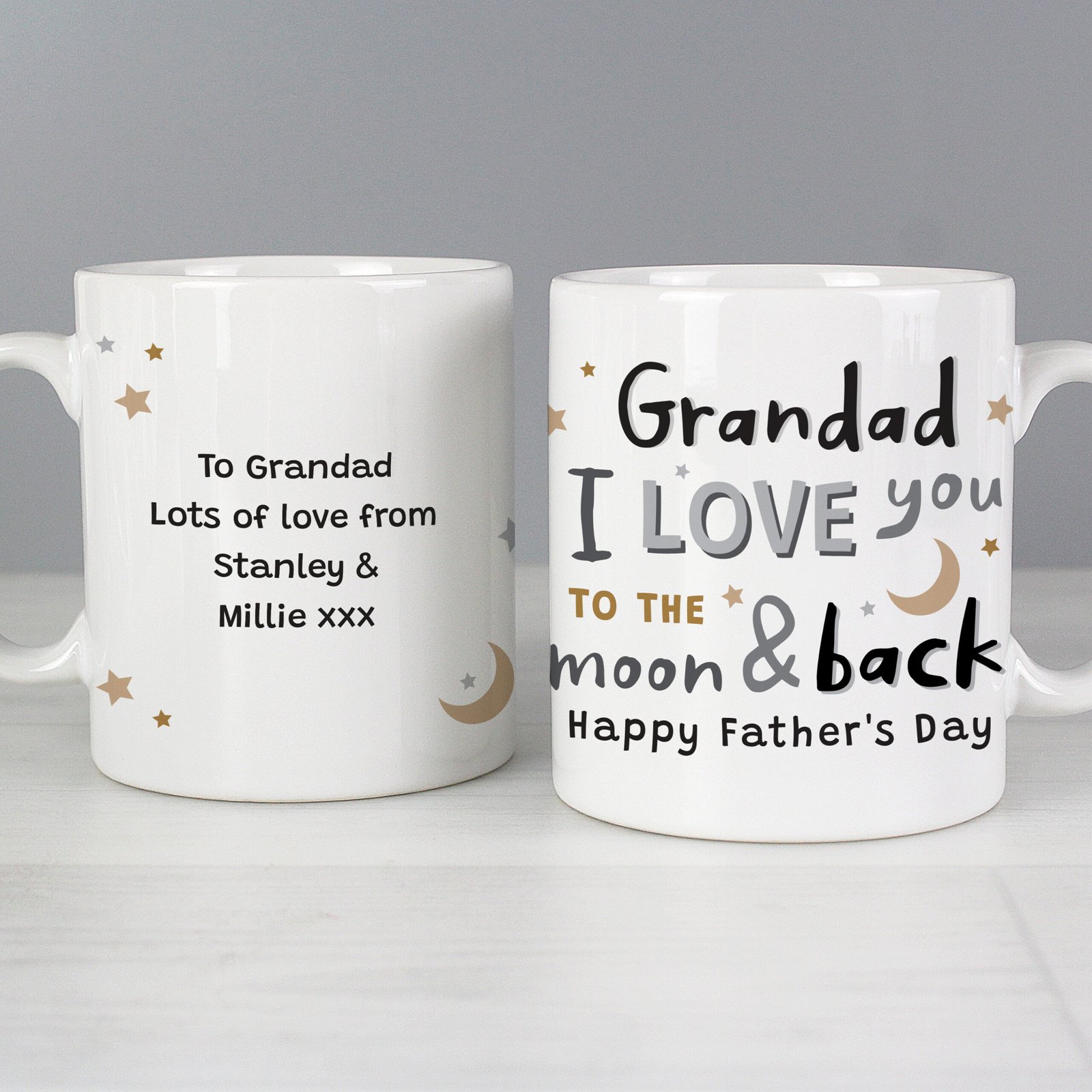 Celebrate your love for that special person with this Personalised ‘I Love You To The Moon & Back’ Mug – a heartfelt gift perfect for Father’s Day or any occasion.