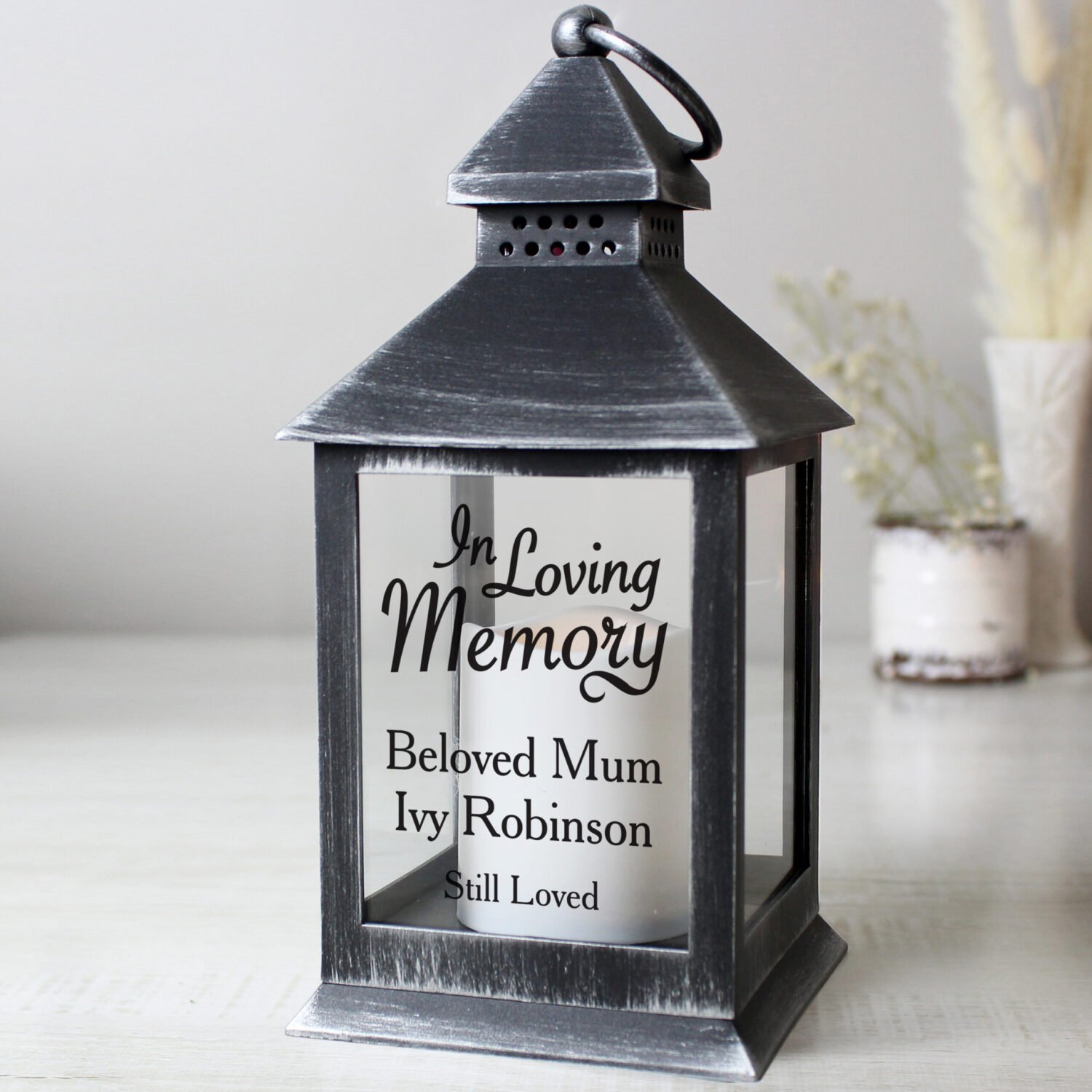 Personalised ‘In Loving Memory’ Rustic Black Plastic Light-up Lantern