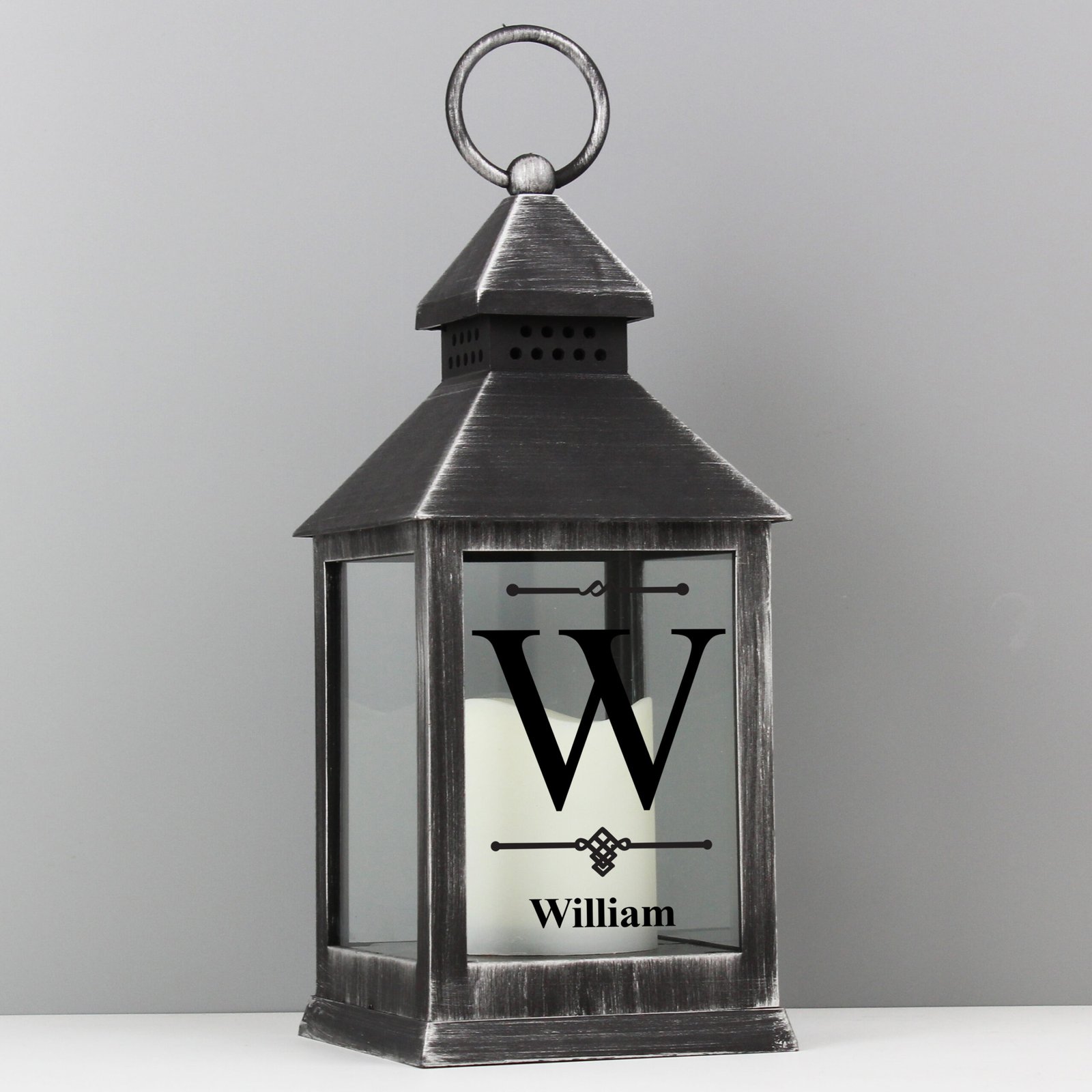 Personalised Initial & Name Rustic Black Plastic Light-up Lantern