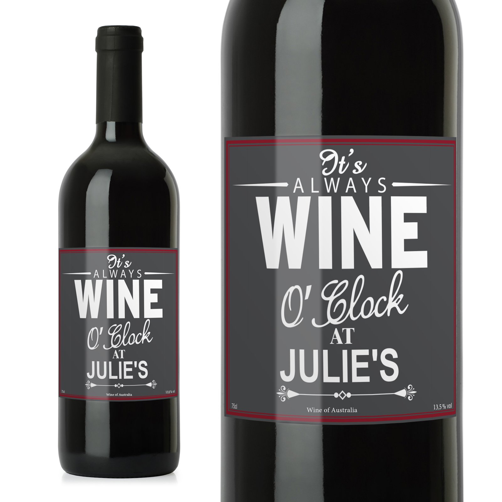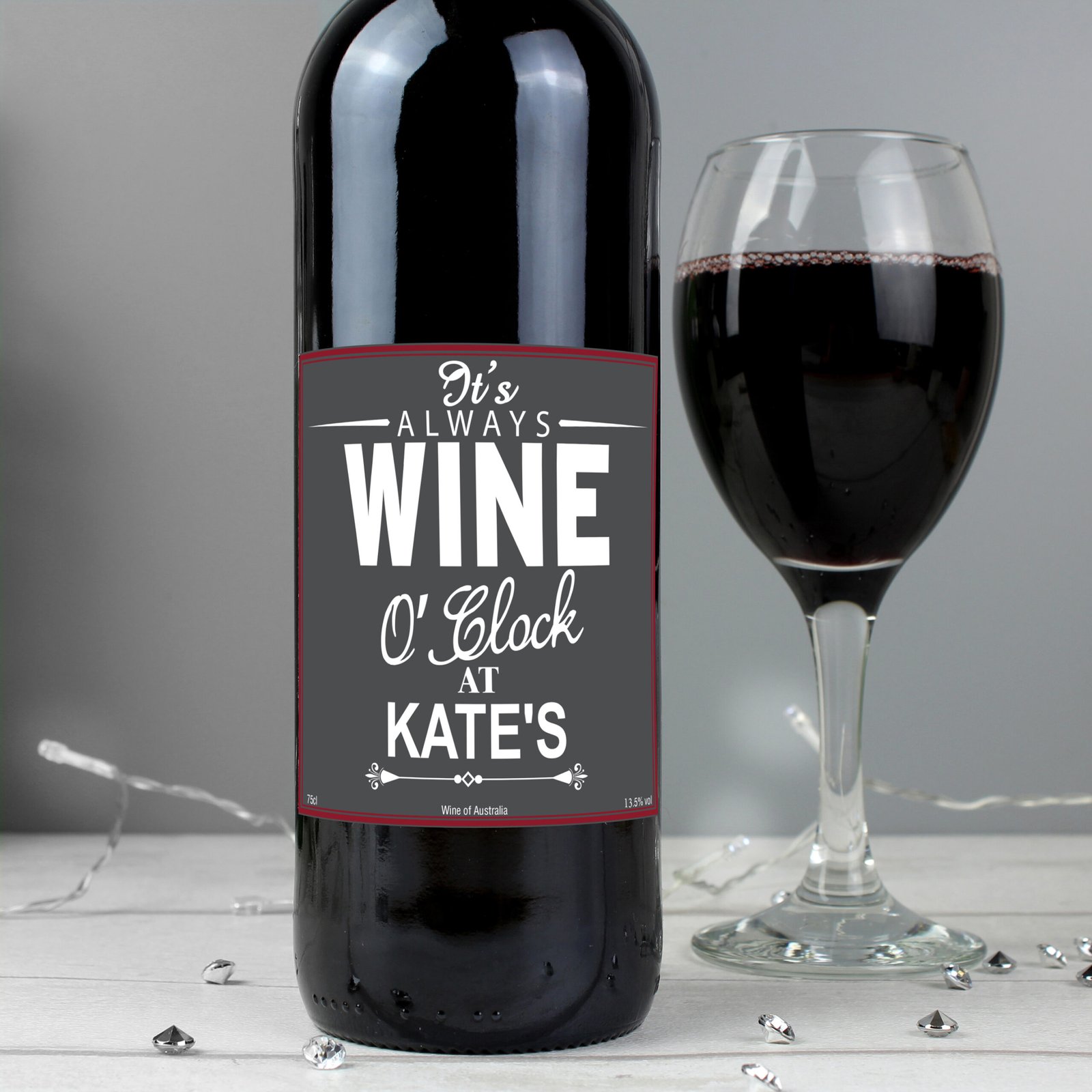 Personalised ‘It’s Always Wine O’Clock’ Bottle of Red Wine