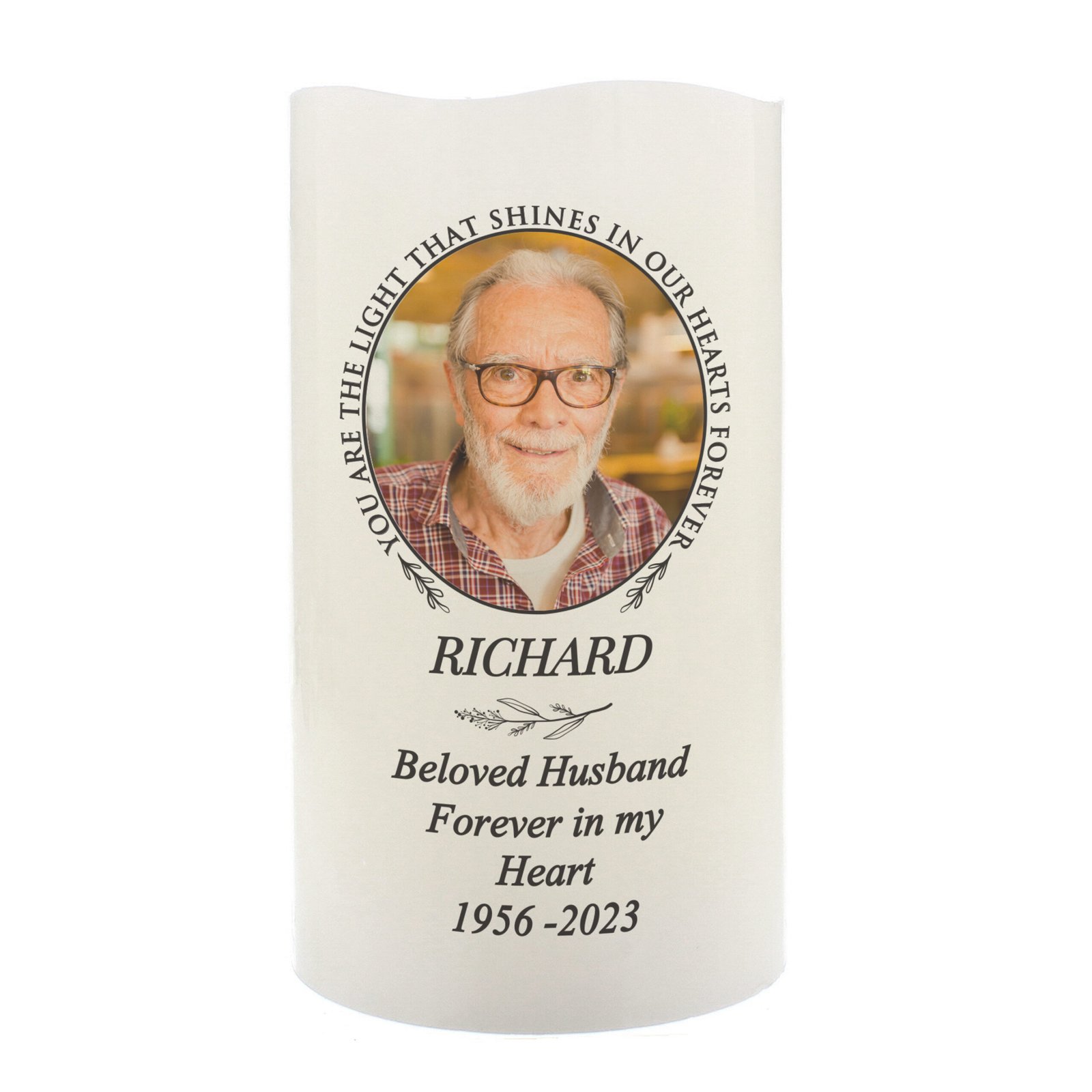 Personalised ‘Light In Our Hearts’ Memorial Photo Upload LED Pillar Candle