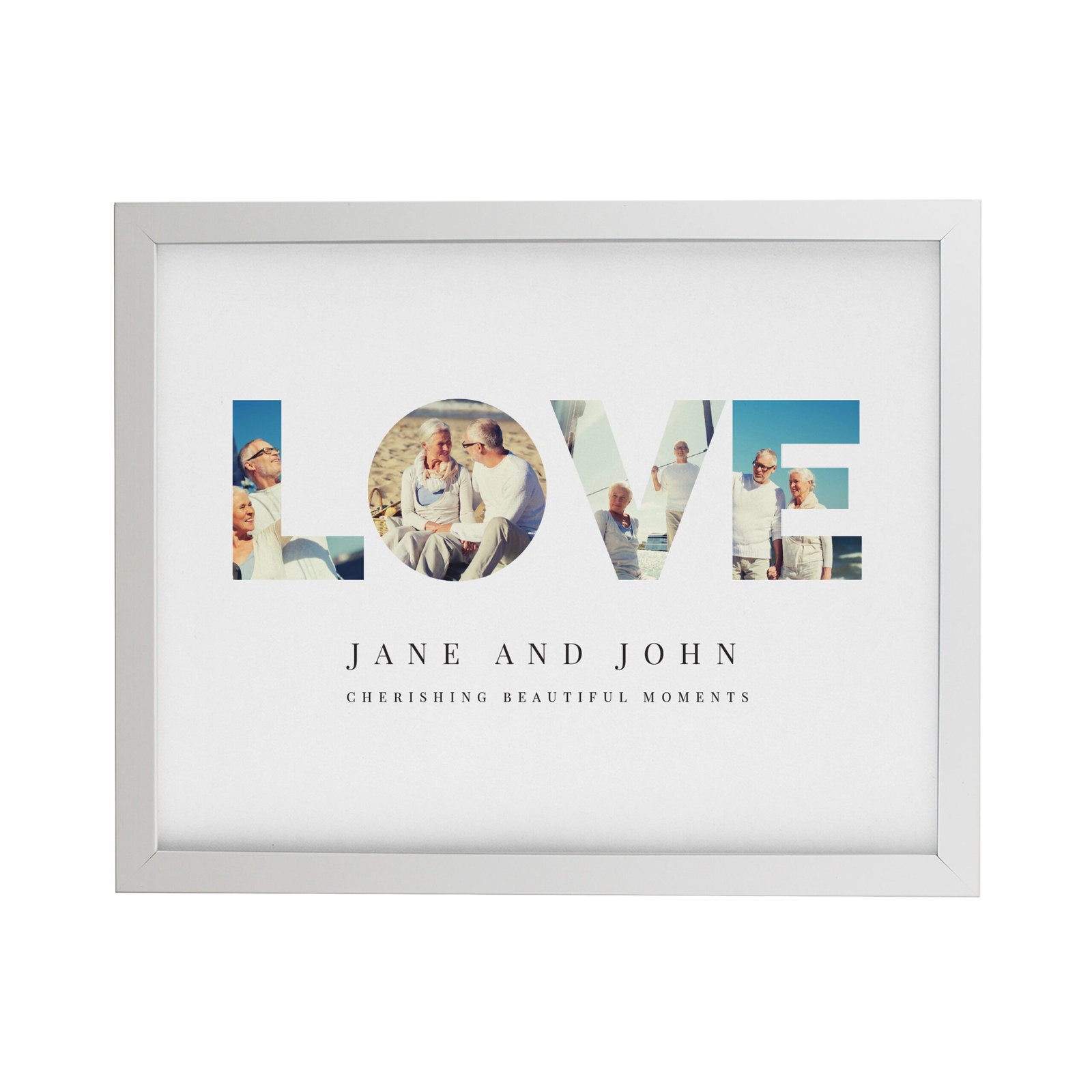 Celebrate your love in a truly meaningful way with this Personalised ‘LOVE’ Couples Photo Upload White Framed Poster — a stunning keepsake that beautifully captures your most cherished memories together. Designed to spell out the word LOVE using your favourite photos, this elegant framed print transforms precious moments into a timeless piece of wall art.