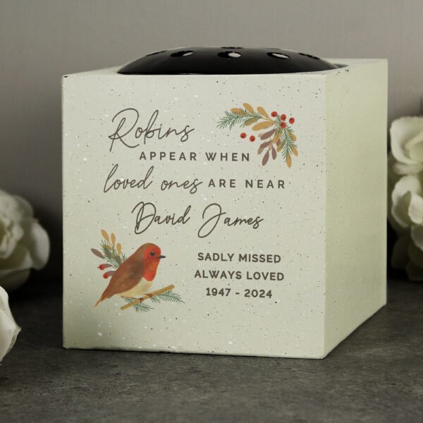 Personalised ‘Robins Appear…’ Memorial Resin Garden/Graveside Vase