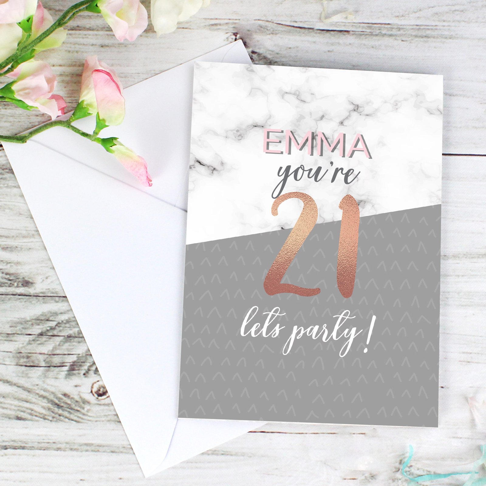 Celebrate birthdays in style with this personalised marble & rose gold card – a stunning keepsake they’ll treasure.