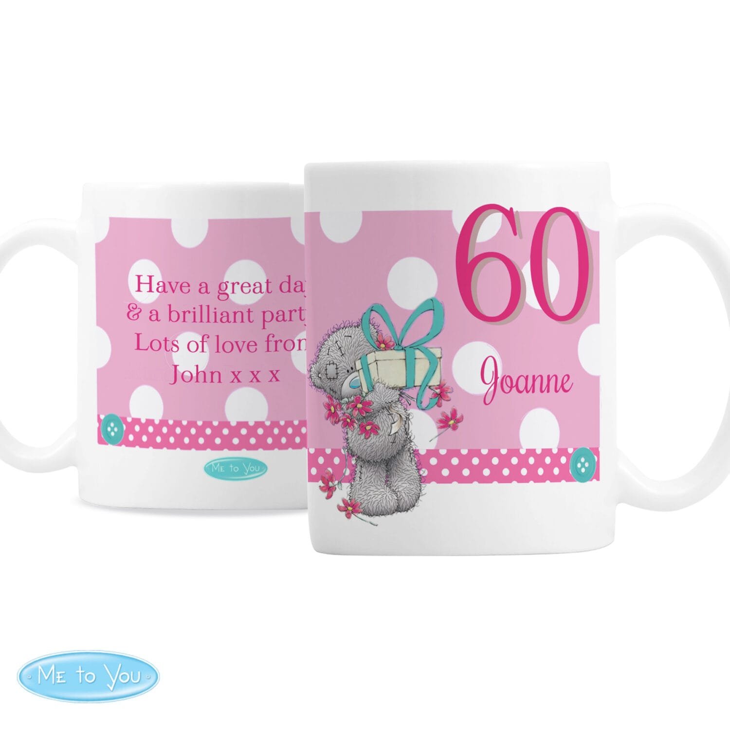 Celebrate a milestone birthday with this adorable Me to You Big Age Pink Ceramic Mug – a thoughtful and cheerful way to mark someone’s special day! Featuring the iconic Tatty Teddy and a bold number design, it’s perfect for sipping tea, coffee, or hot chocolate in birthday style.