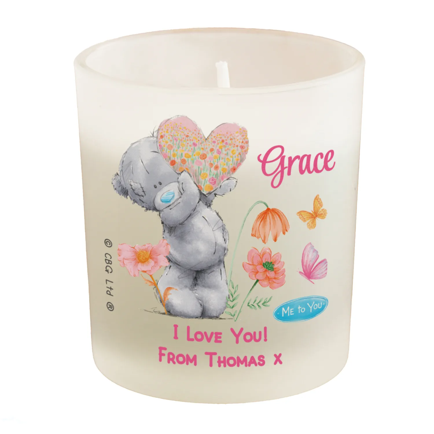 Personalised Me to You Floral Design Scented Frosted Glass Jar Candle