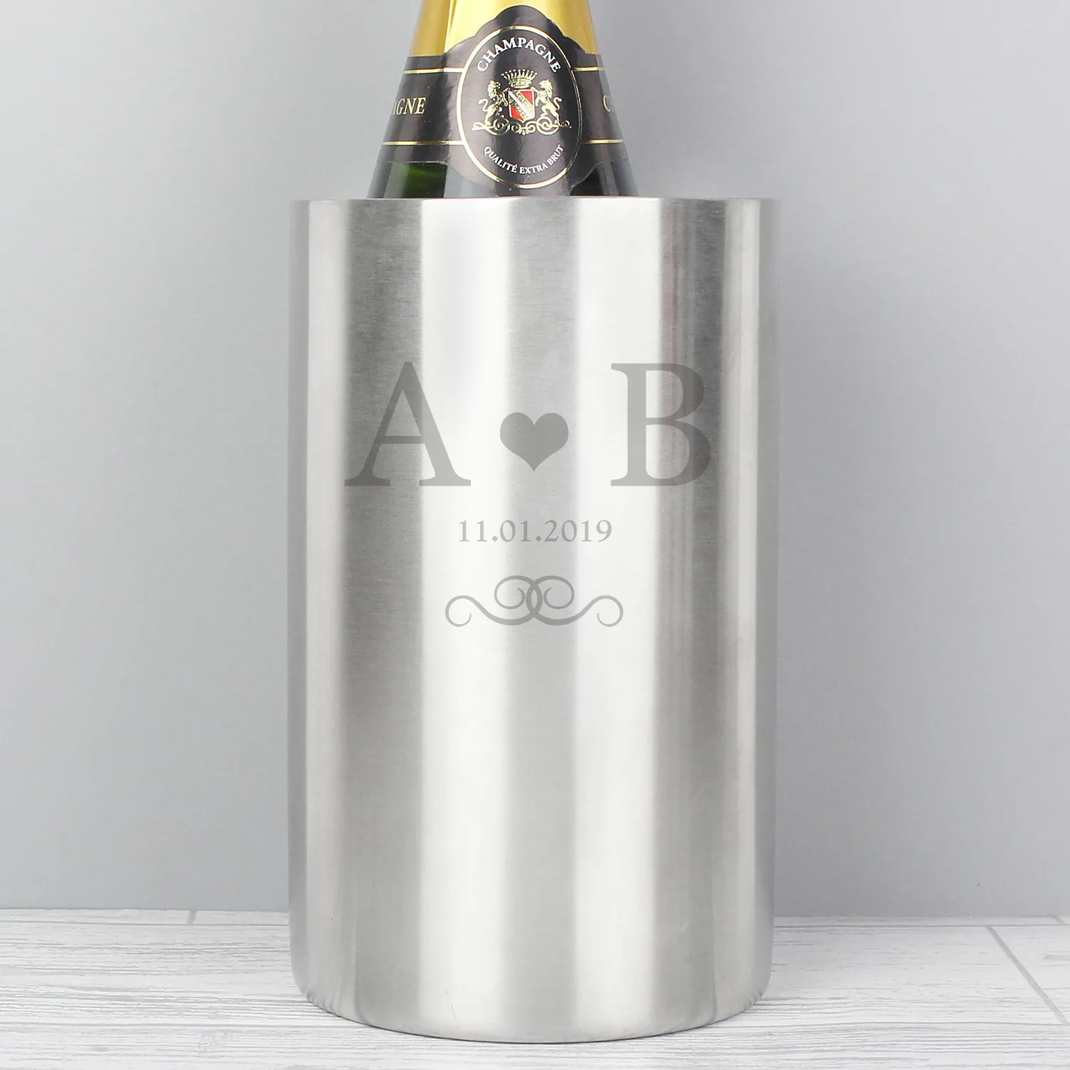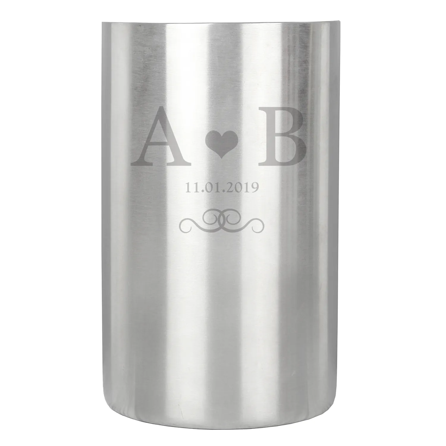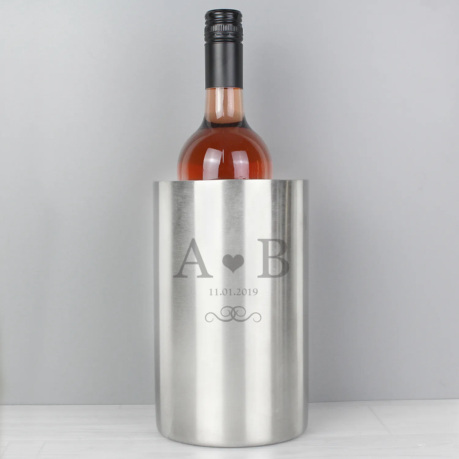 Personalised Monogram Initials Heart Motif Stainless Steel Wine Cooler