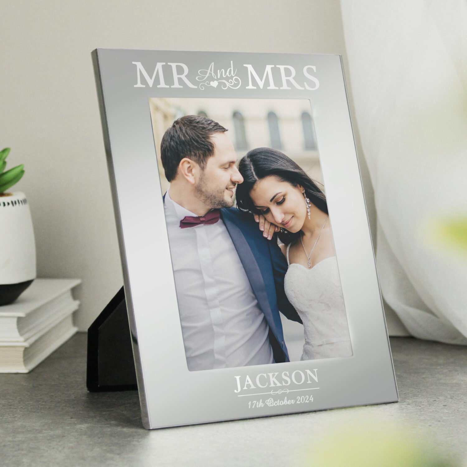 Personalised ‘Mr And Mrs’ 4×6 Portrait Silver Aluminium Photo Frame