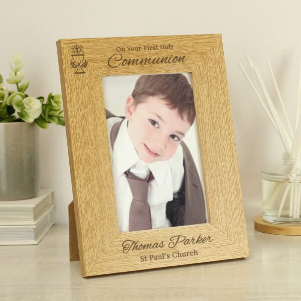 Personalised ‘First Holy Communion’ 4×6 Portrait Oak Finish Photo Frame