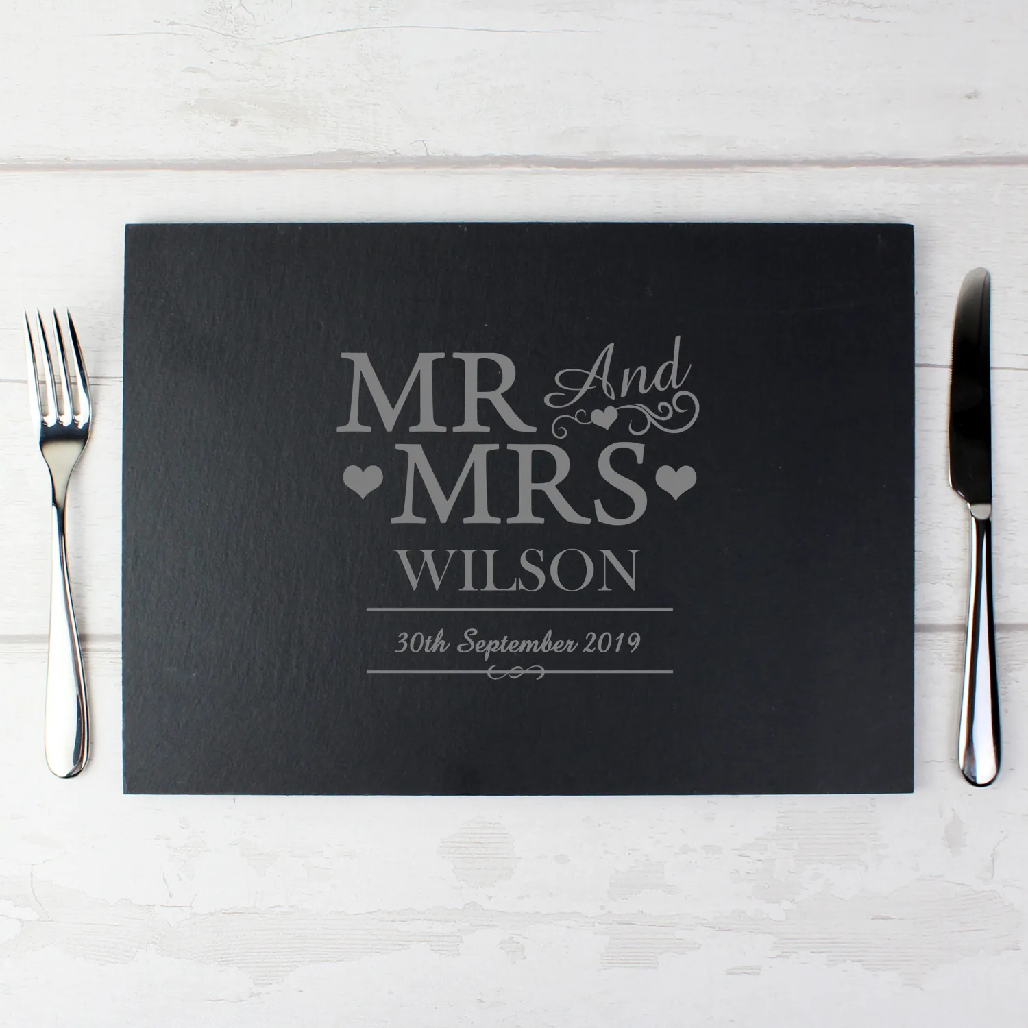 Personalised ‘Mr And Mrs’ Hearts Motif Slate Placemat