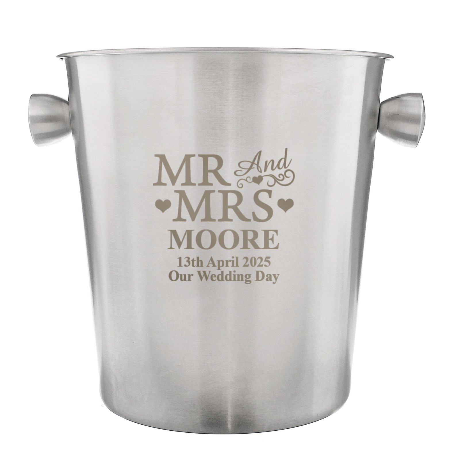 Personalised ‘Mr And Mrs’ Hearts Motif Stainless Steel Ice Bucket