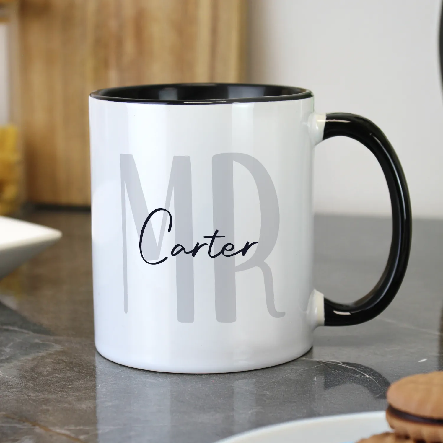 Combine elegance and personalisation with this stylish “Mr” black handled ceramic mug – a thoughtful gift for weddings, anniversaries, or teachers. With a classic design and the option to add a surname, this mug transforms a daily routine into a memorable keepsake.