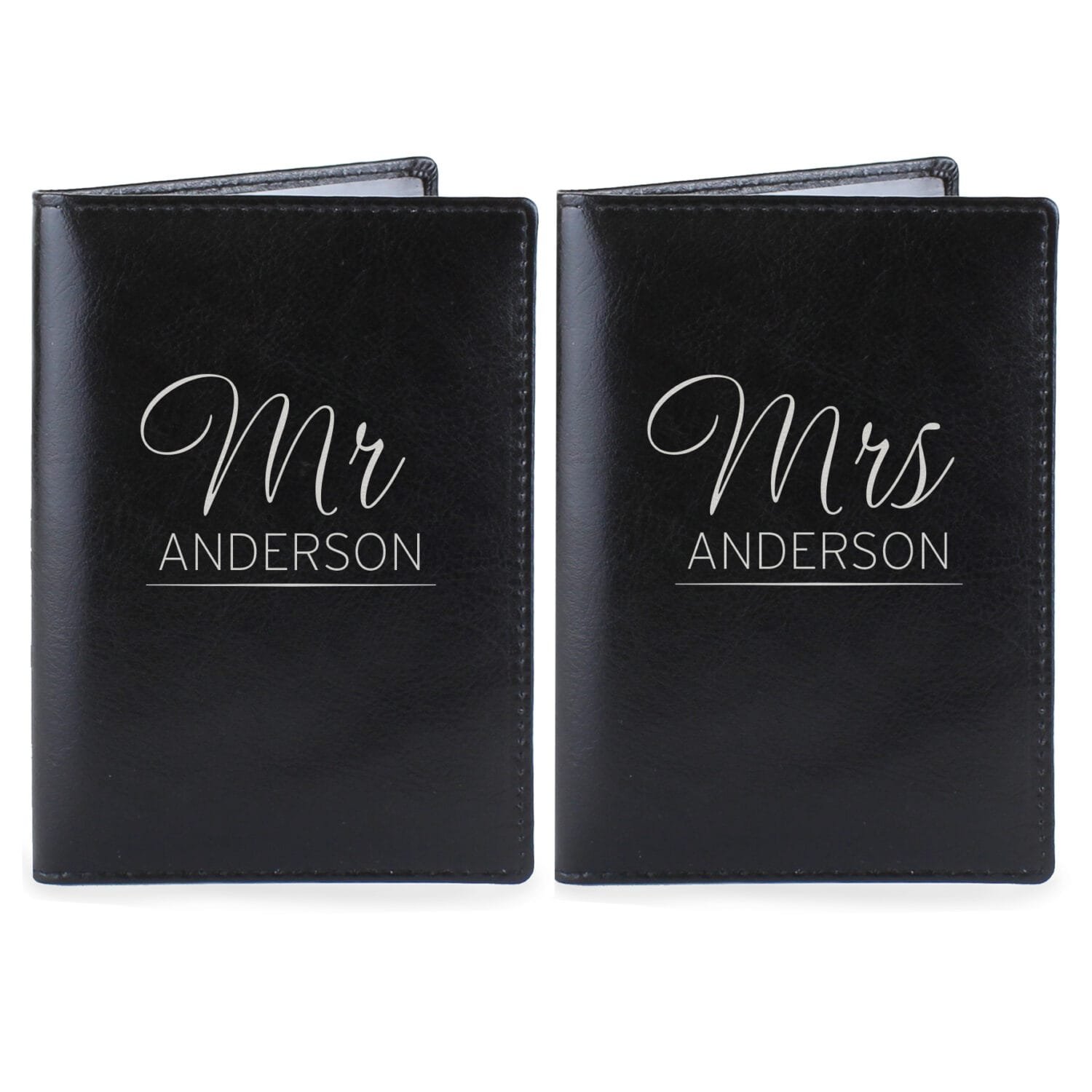 Personalised ‘Mr & Mrs’ Black Leather Passport Holder Set