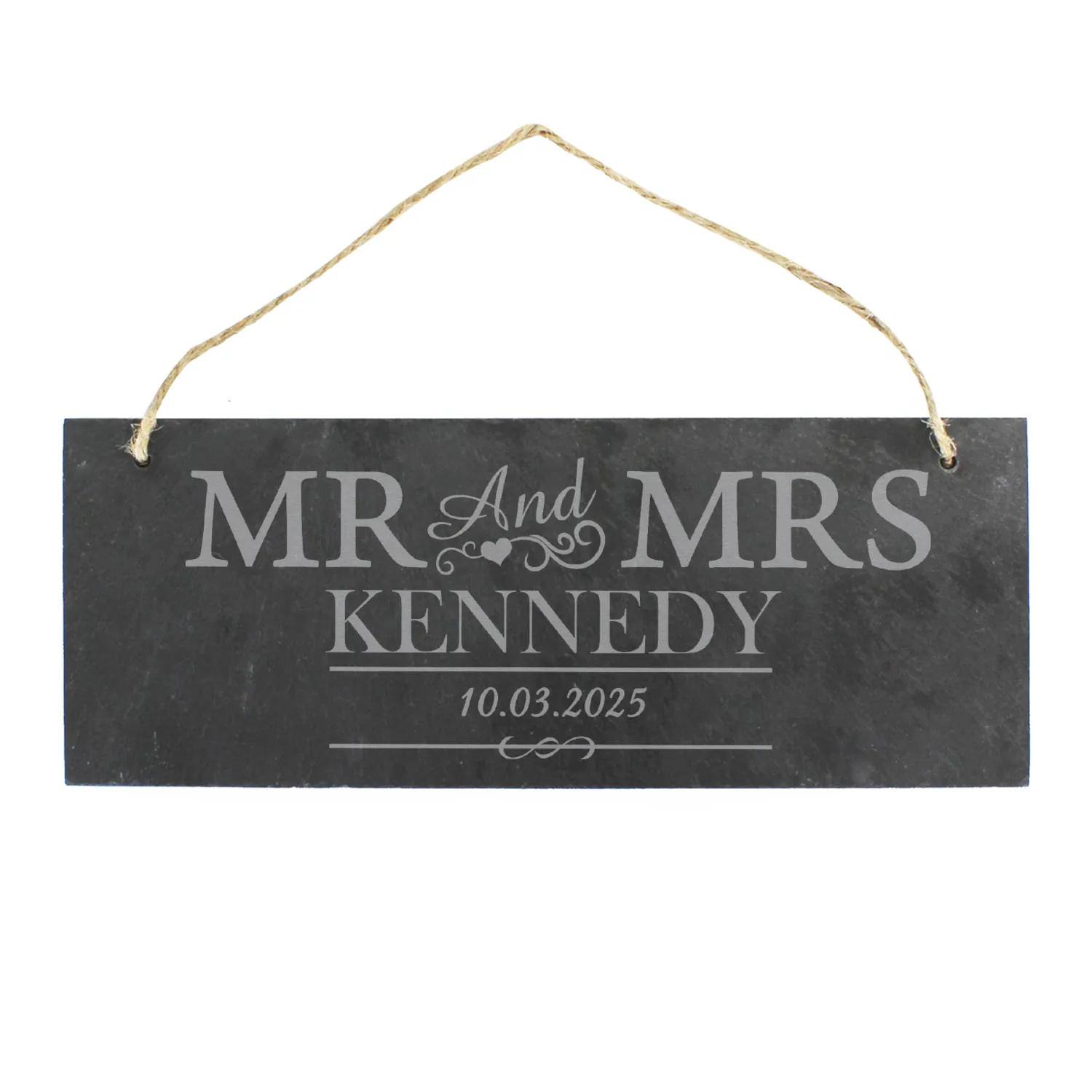 Personalised ‘Mr And Mrs’ Hanging Slate Plaque