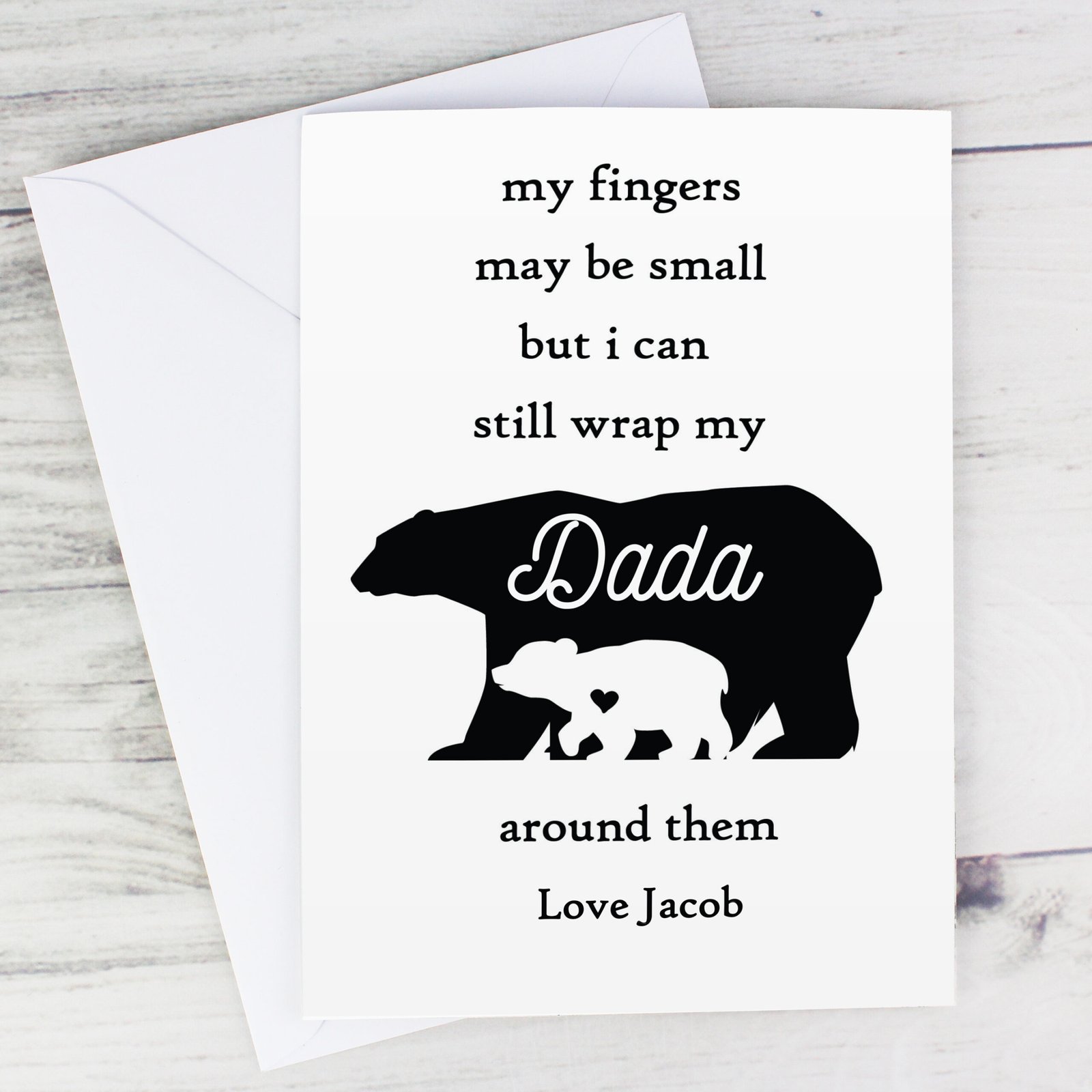 Send a warm and loving message with this adorable Personalised ‘My Fingers May Be Small…’ Bears Motif Card. Featuring a charming bear design and heartfelt fixed text, this card is perfect for celebrating special moments with a personal touch.