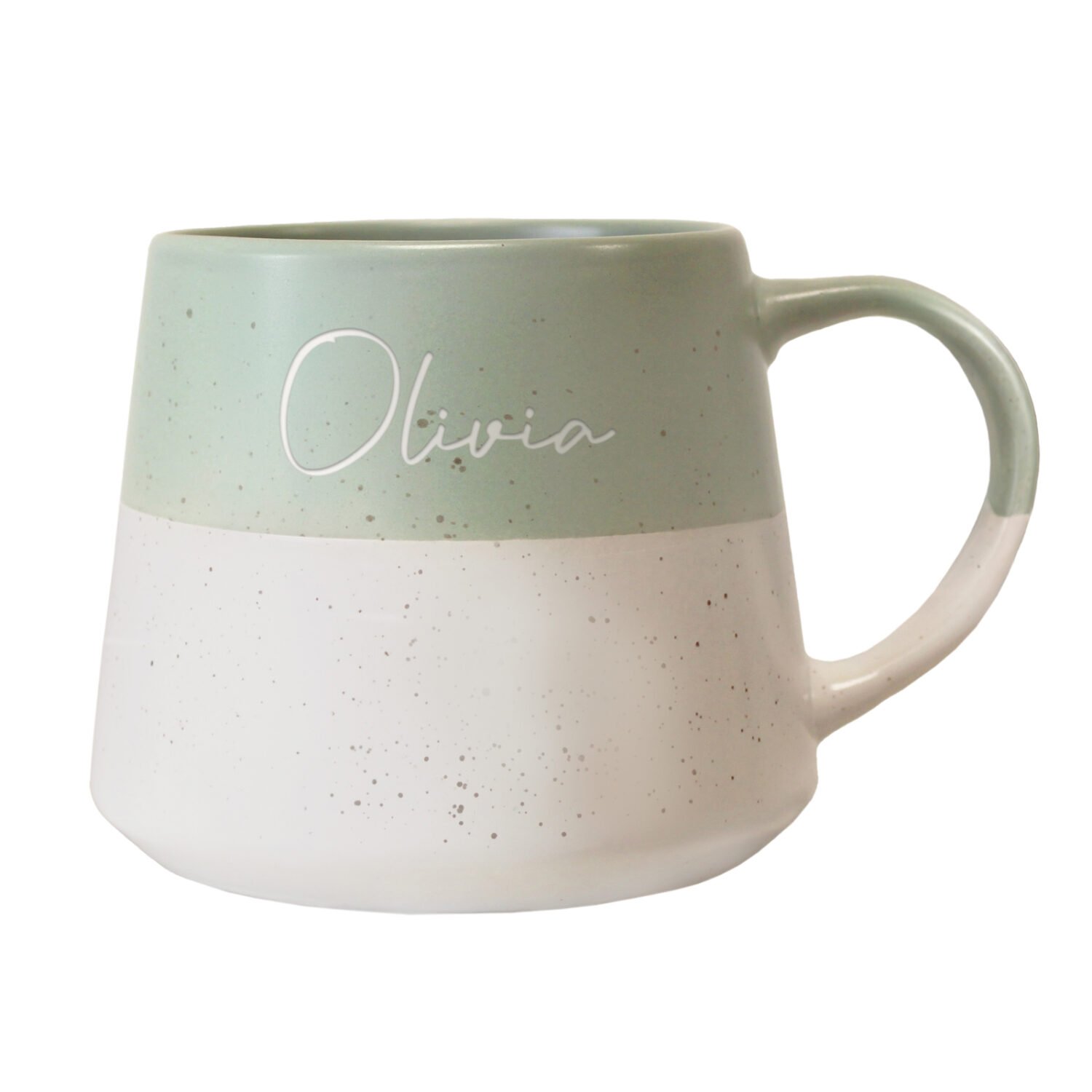 Personalised Name Green & White Dipped Speckled Design Ceramic Mug