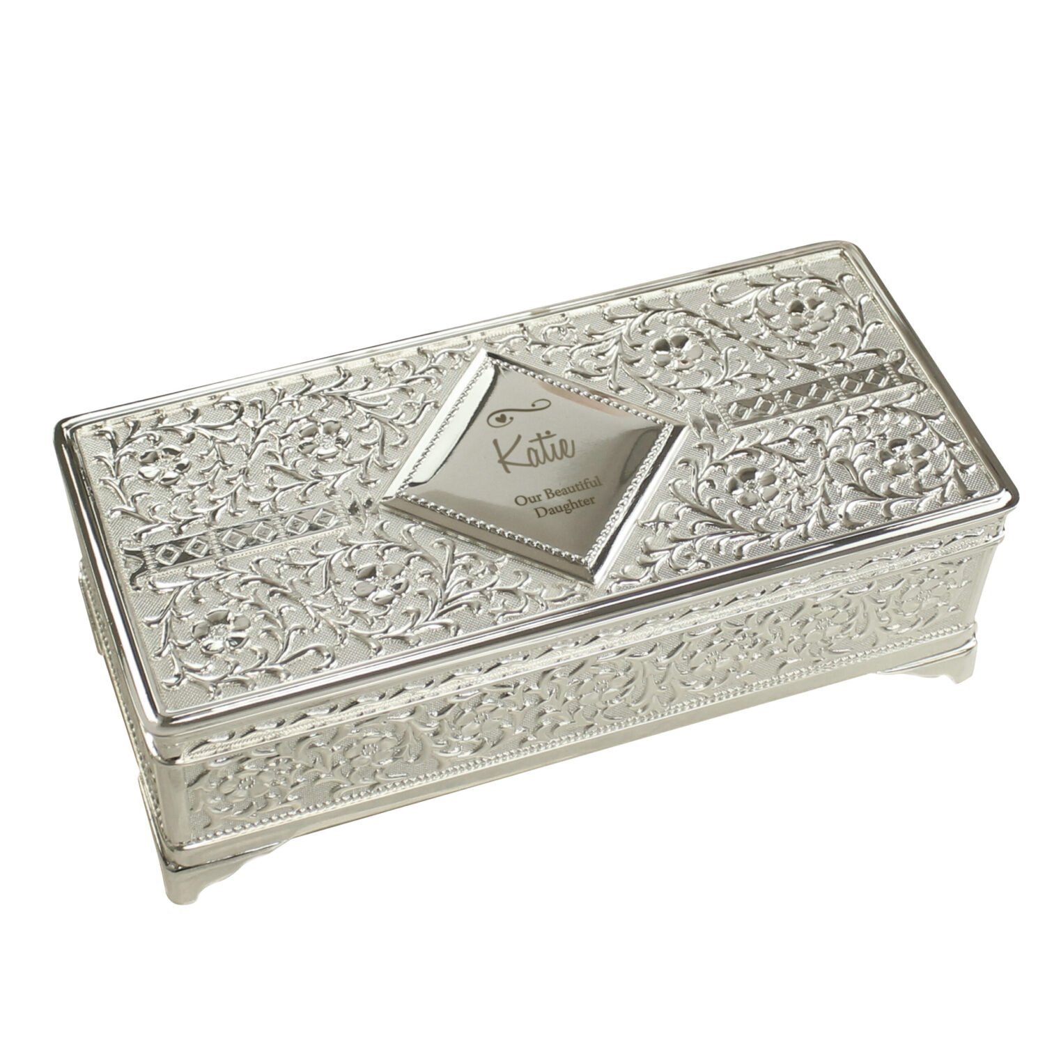 This Personalised Antique Silver Plated Jewellery Box is a thoughtful and stylish way to present a heartfelt message and safeguard cherished keepsakes — a perfect gift for someone you love.