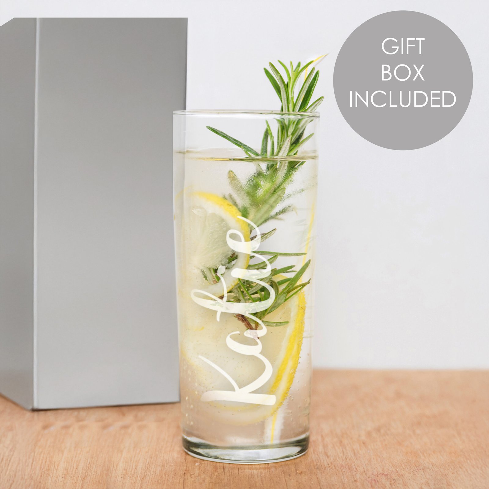 Add a touch of elegance to any drink with this beautifully engraved hi-ball glass. Perfect for cocktails, soft drinks, or even water, this personalised glass makes a thoughtful and stylish gift for any occasion.