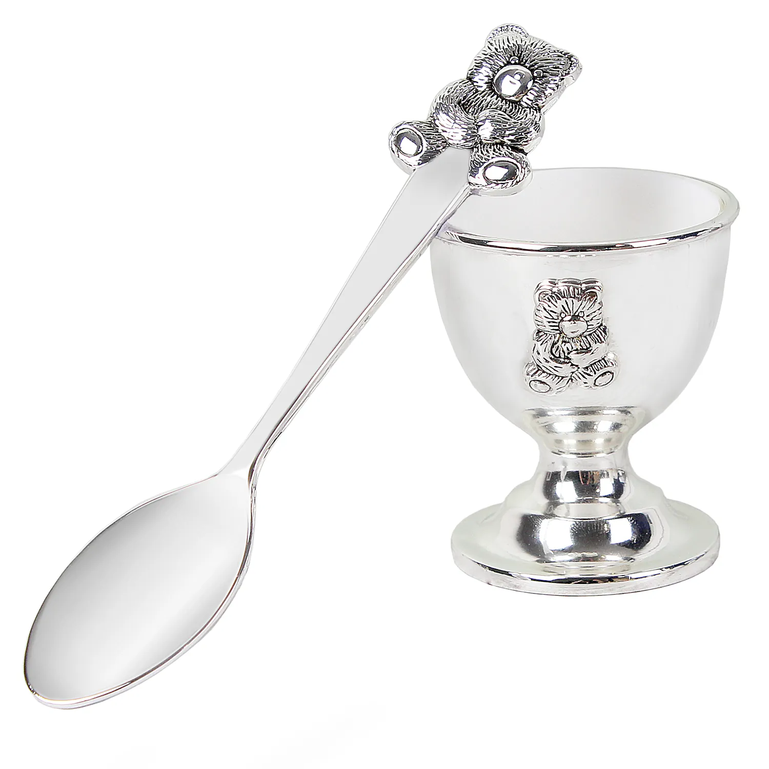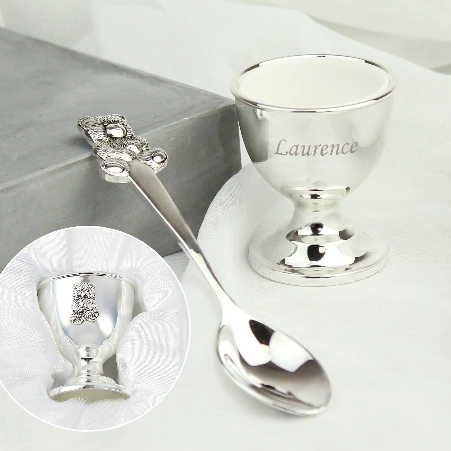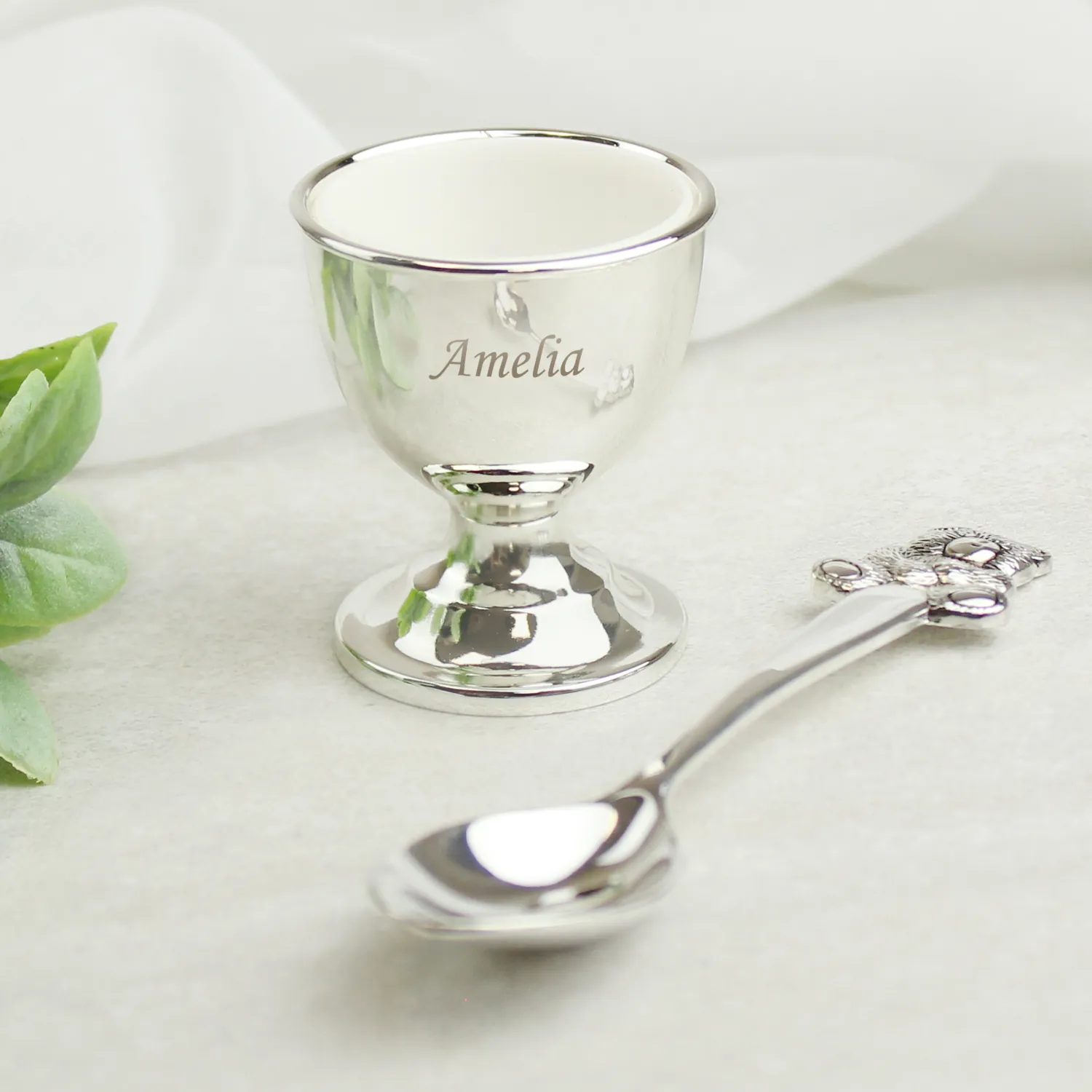 Personalised Name Only Silver Plated Egg Cup & Spoon Gift Set