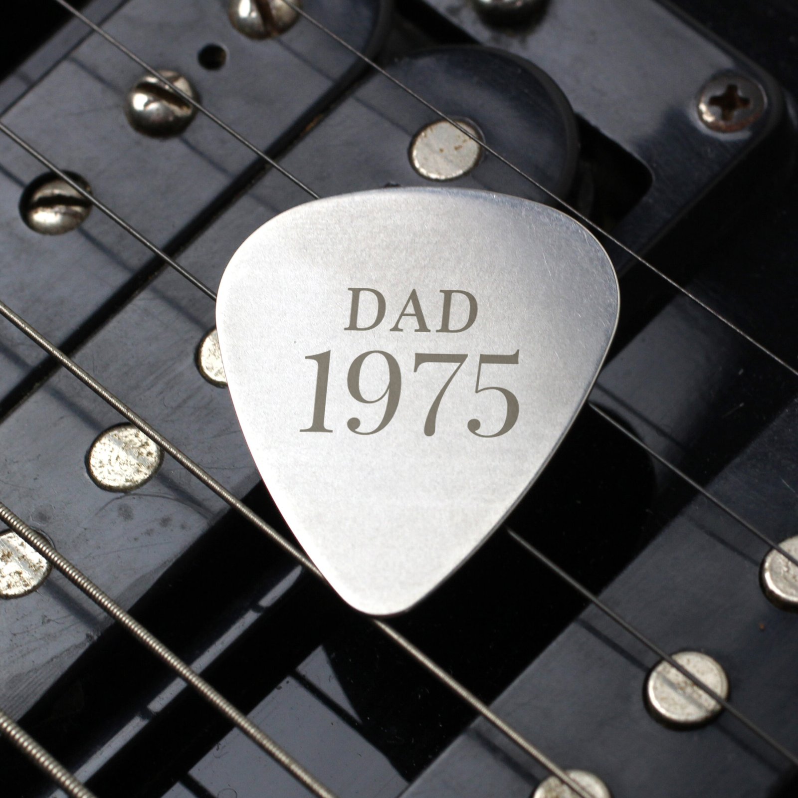Personalised Name & Year Silver Stainless Steel Plectrum