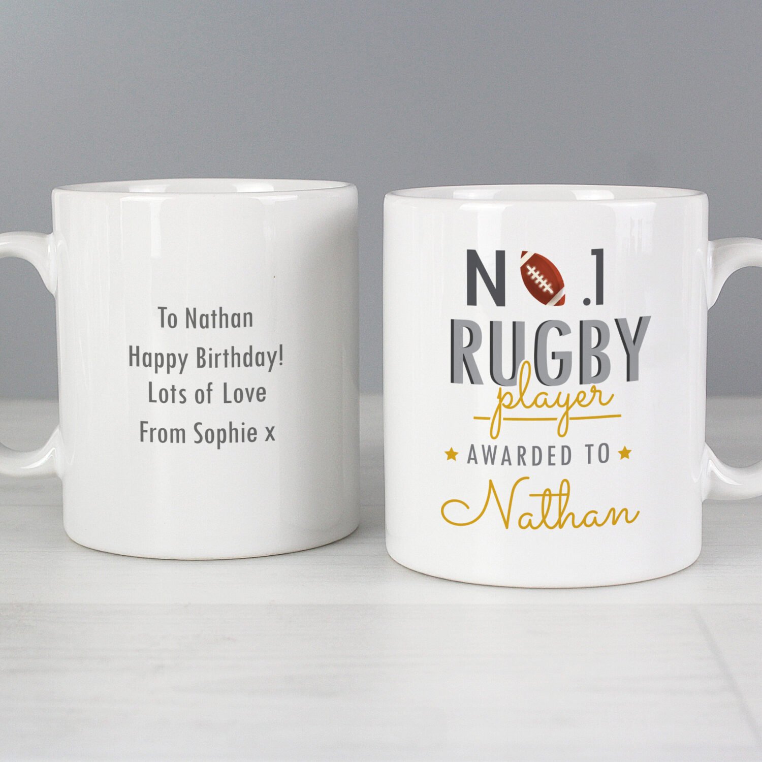 Celebrate your favourite scrum-half, prop, or winger with a mug that’s as strong and personal as their game!