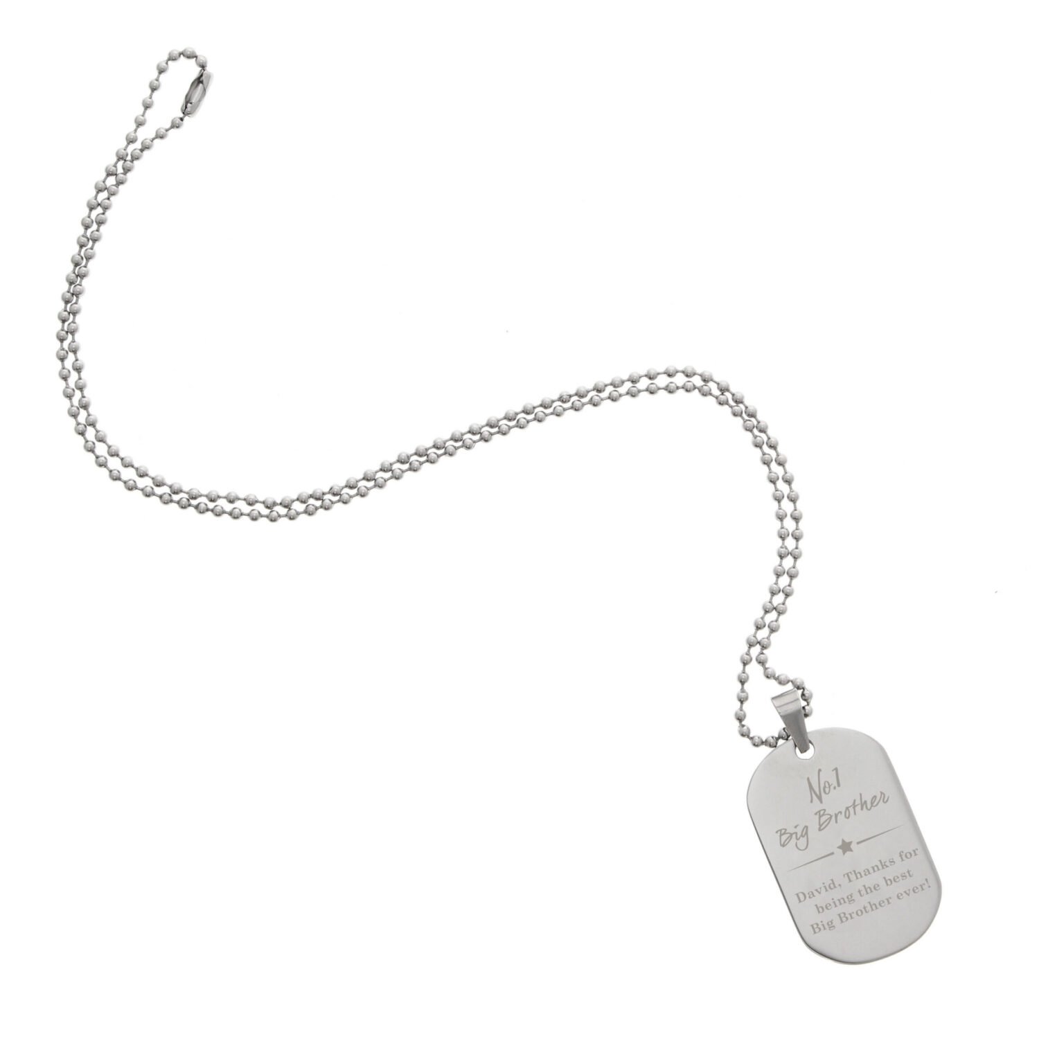 Personalised ‘No.1’ Star Motif Stainless Steel Dog Tag Necklace