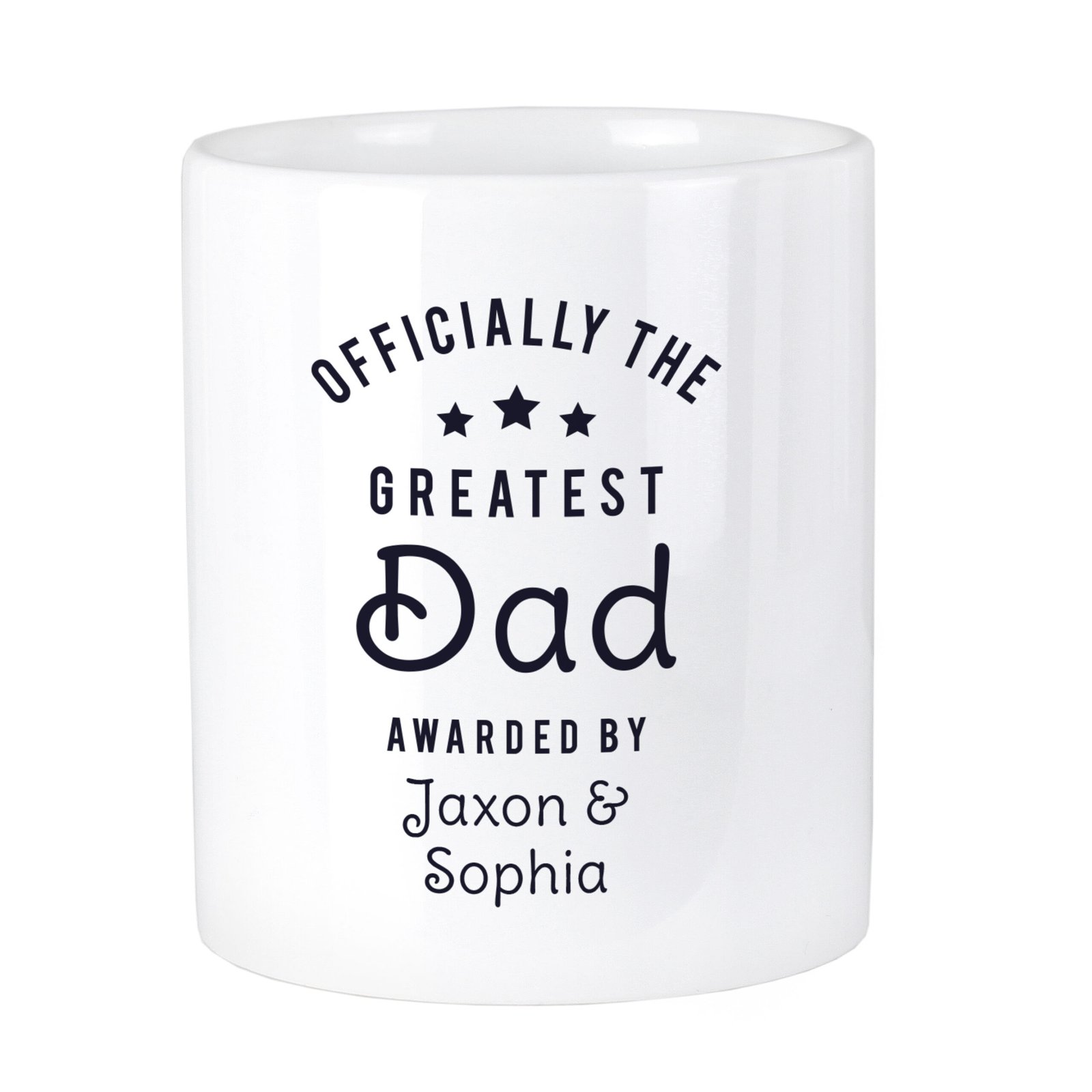 Keep your desk, vanity, or workspace organised in style with this charming Personalised Officially The Greatest Ceramic Storage Pot. Perfect for holding makeup brushes, pens, tools, and more, this pot also makes a thoughtful, customised gift for someone special.