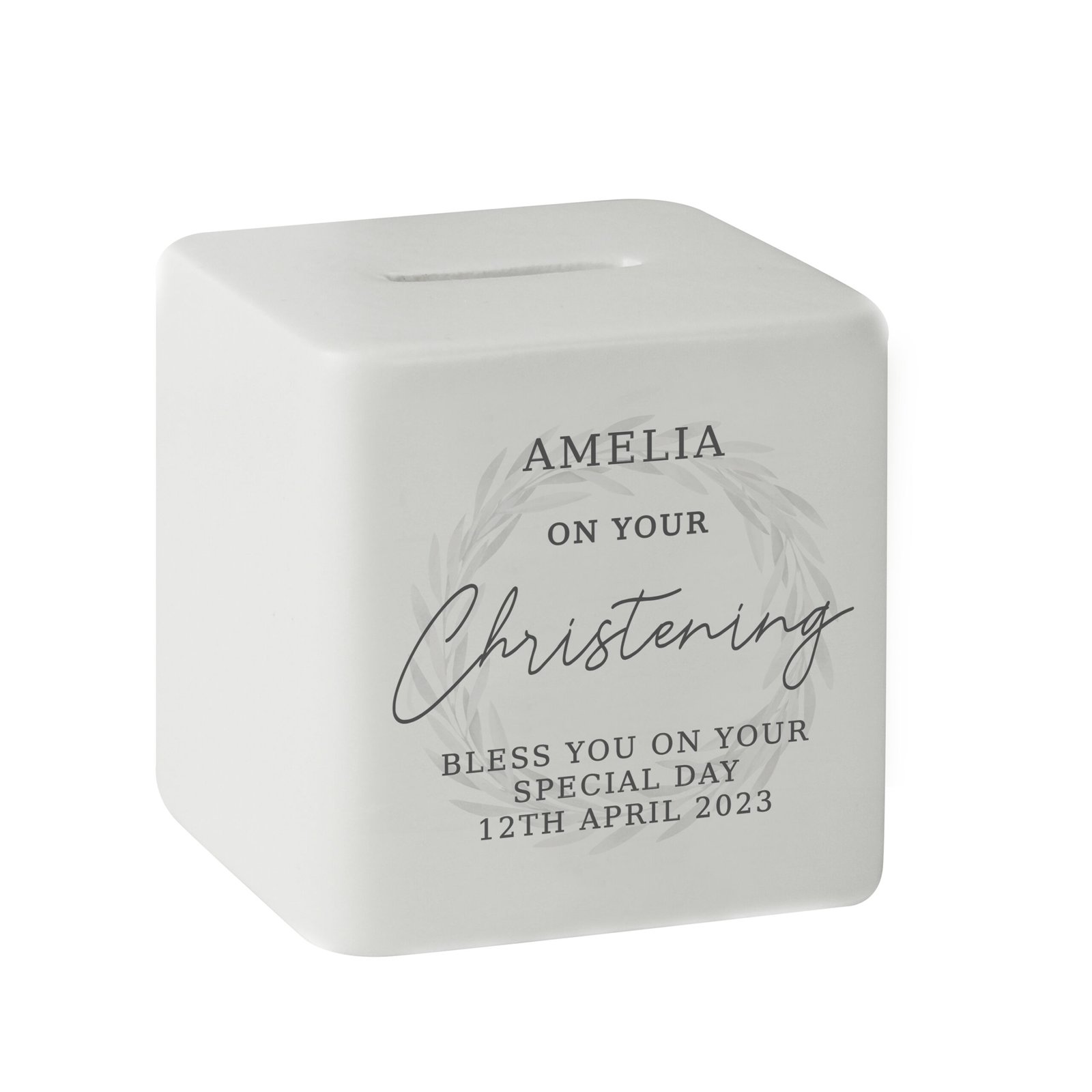 Personalised ‘On Your Christening’ Ceramic Square Money Box
