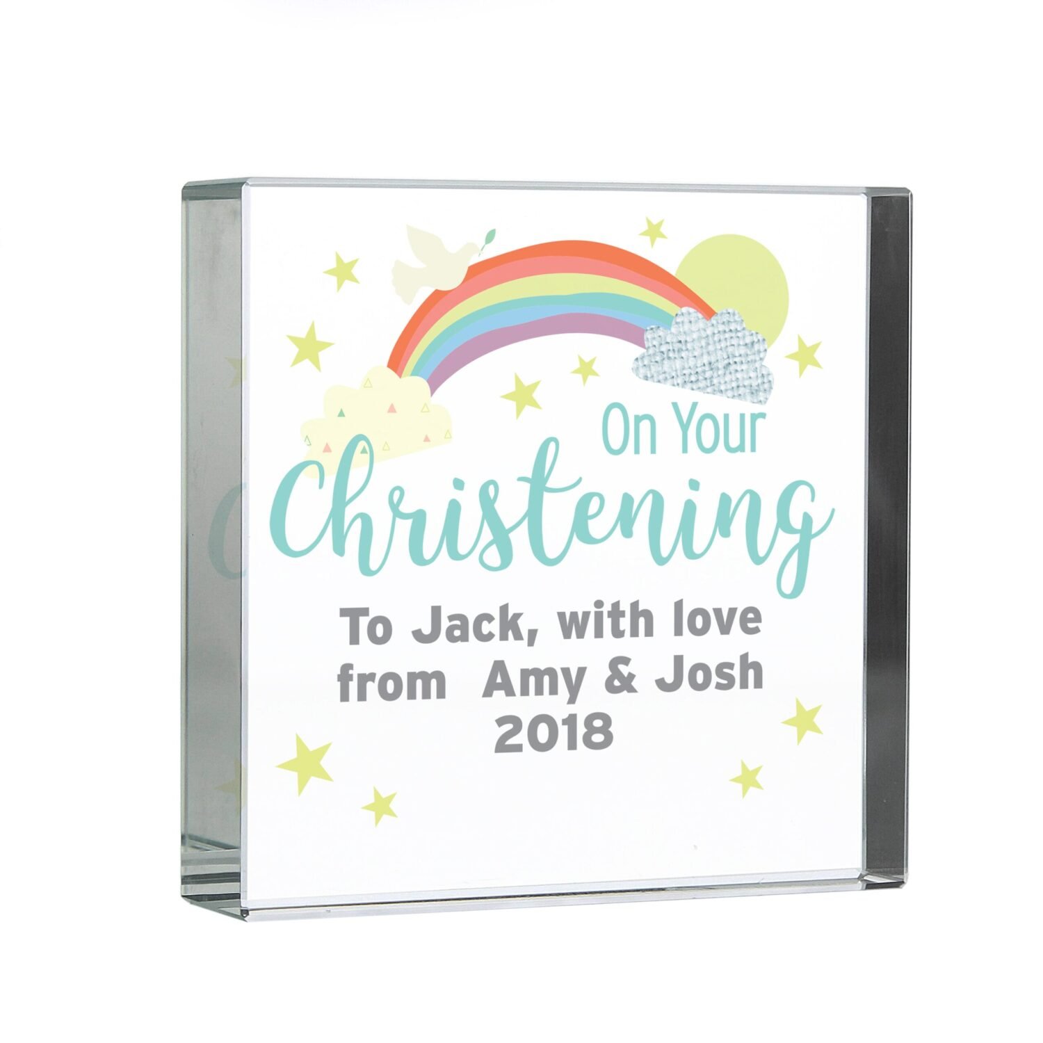 Personalised ‘On Your Christening’ Rainbow Design Crystal Glass Token