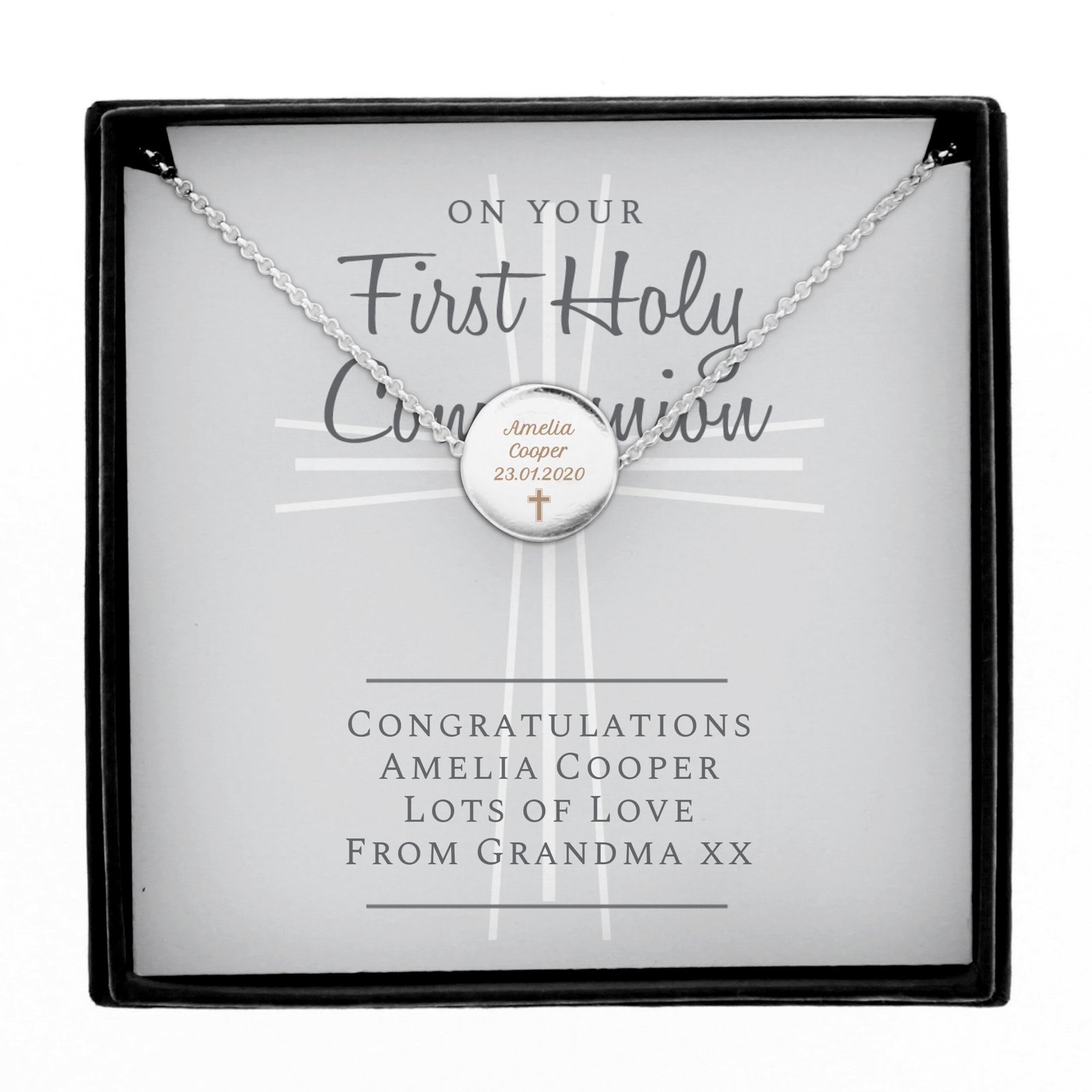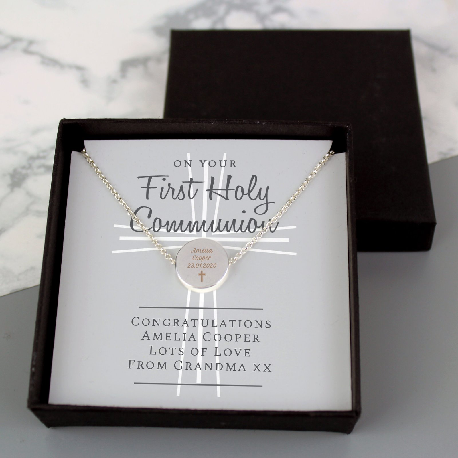 Personalised ‘On Your First Holy Communion’ Silver Disc Necklace & Gift Box